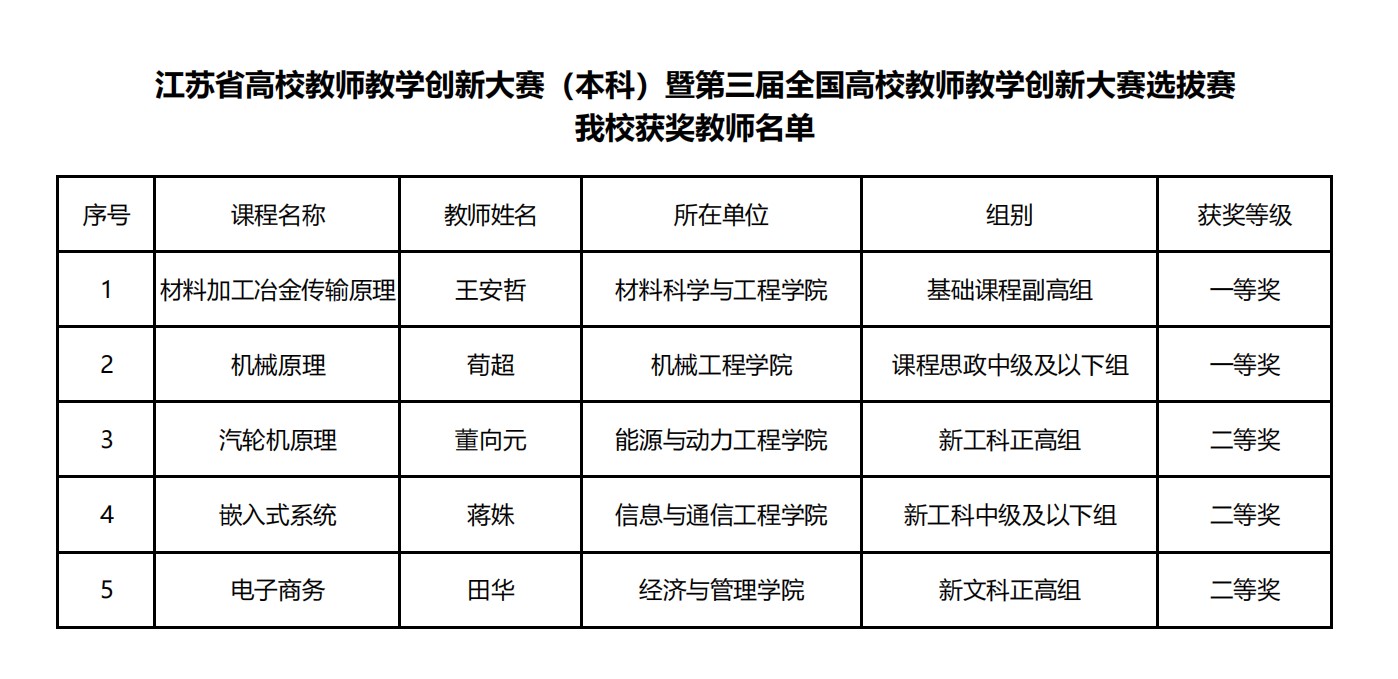 近日,江苏省高校教师教学创新大赛(本科)暨第三届全国高校教师教学创新大赛选拔赛决赛在南京航空航天大学落下帷幕。beat365共6门课程参赛,其中2门课程入围决赛,最终机械工程学院荀超老师及其团队,材料科学与工程学院王安哲老师及其团队在各自组别中荣获大赛一等奖;能源与动力工程学院董向元老师团队、信息与通信工程学院蒋姝老师团队、经济与管理学院田华老师团队荣获大赛二等奖。