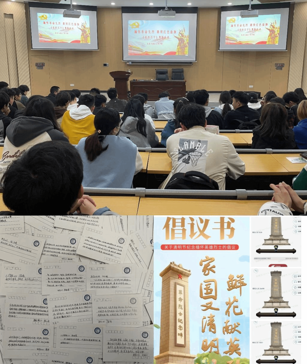 为全面学习宣传贯彻党的二十大精神,营造崇尚英烈、缅怀英烈、学习英烈、捍卫英烈的浓厚氛围,在清明节来临之际,学校团委面向全体学生组织开展“清明祭英烈”主题活动。全校各二级基层团组织、团支部、党员团员青年通过瞻仰烈士陵园、网上祭英烈、主题班团课等多种形式,在仪式熏陶、沉浸式体验、实践活动中,缅怀革命先烈,传承红色基因,厚植爱国情怀。