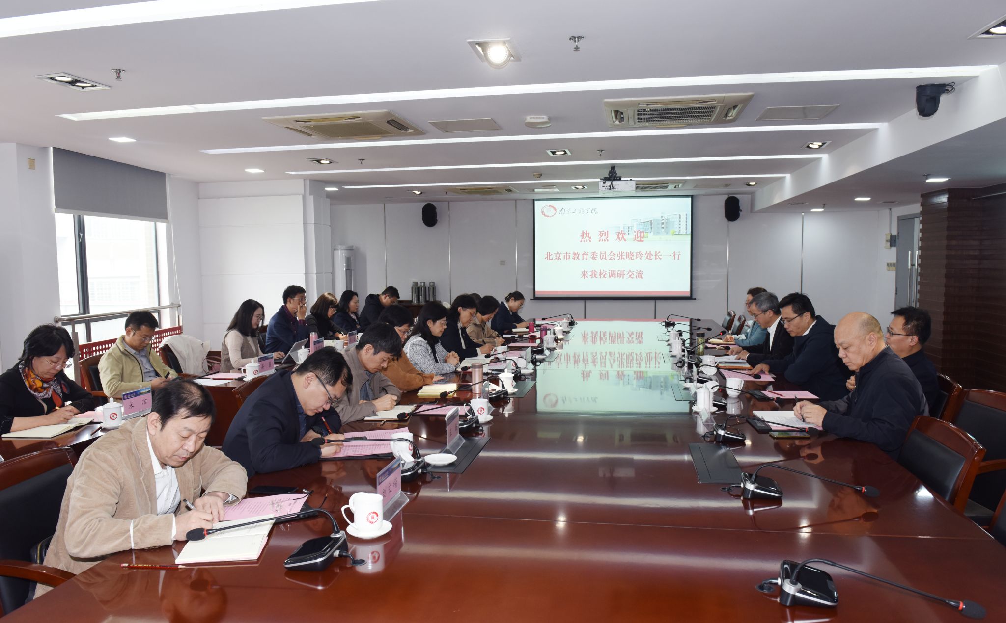 4月24日,北京市教育委员会组织带领北方工业大学、北京城市学院、北京建筑大学等11所院校来访beat365,就本科教育教学审核评估工作进行专题调研。beat365党委常委、副院长郑锋接待了来宾并座谈,江苏省教育评估院院长周明、副院长吴立平,北京市教委处长张晓玲,北方工业大学副校长栗苹、北京城市学院副校长胡丽琴等领导出席座谈会。