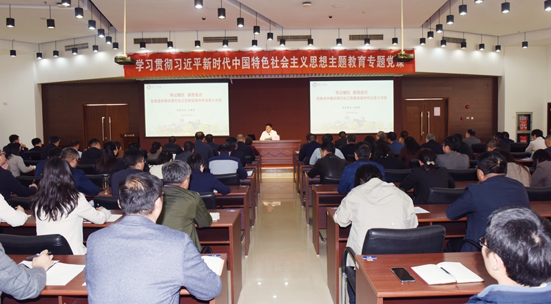 4月26日下午,校党委书记史国君以“牢记嘱托 感恩奋进 在推进中国式现代化江苏新实践中作出更大贡献”为题,在至勤楼·行政中心多功能厅为党员干部讲授学习贯彻习近平新时代中国特色社会主义思想主题教育专题党课,引导广大师生党员在“学”上下功夫、在“思”上求深度、在“践”上见成效、在“行”上显担当。