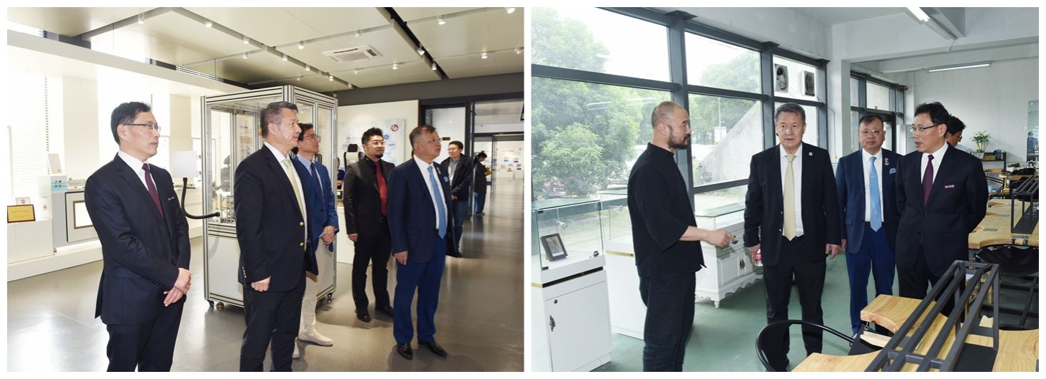 会前,beat365党委常委、副院长张仰飞陪同刘骏校长一行实地参观考察了beat365创新创业学院、大学生创业园“天印梦工场”及艺术与设计学院。