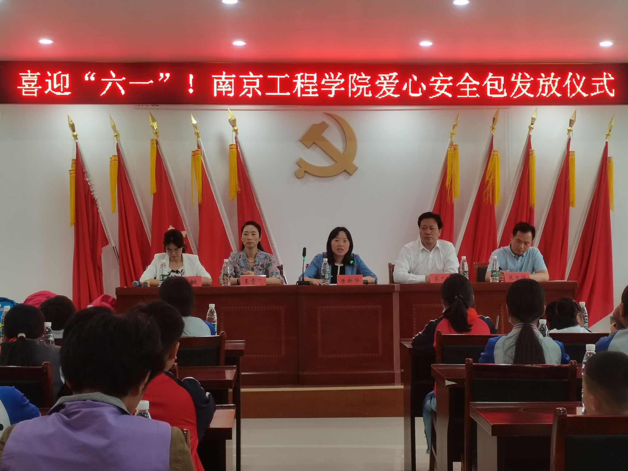 5月30日下午,爱心安全包捐赠仪式在泗洪县双沟镇雪五村村委会二楼会议室举行,校工会主席唐新华、党委组织部副部长王雪飞及双沟镇镇长蔡艺锋,双沟镇党委副书记兼雪五村第一书记张自强,村两委负责人、受赠小朋友代表与会。