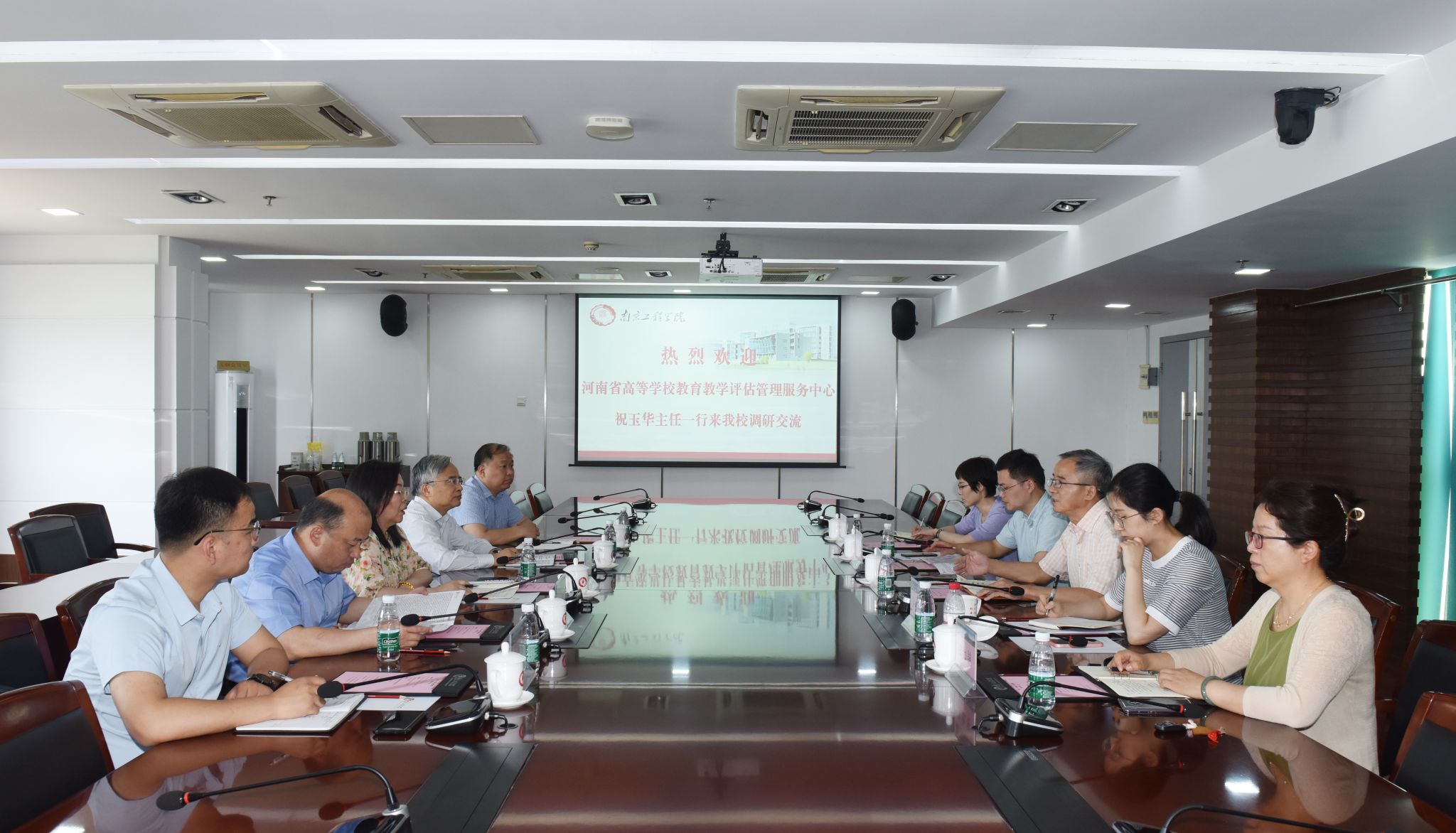 6月9日上午,河南省高等学校教育教学评估管理服务中心祝玉华主任带队来校走访交流,beat365党委常委、副院长郑锋在至勤楼·行政中心北303会议室热情接待了来宾并座谈,江苏省教育评估院高教评估室副主任(主持工作)许慧、高教评估室项目主任金凯等领导出席座谈会。