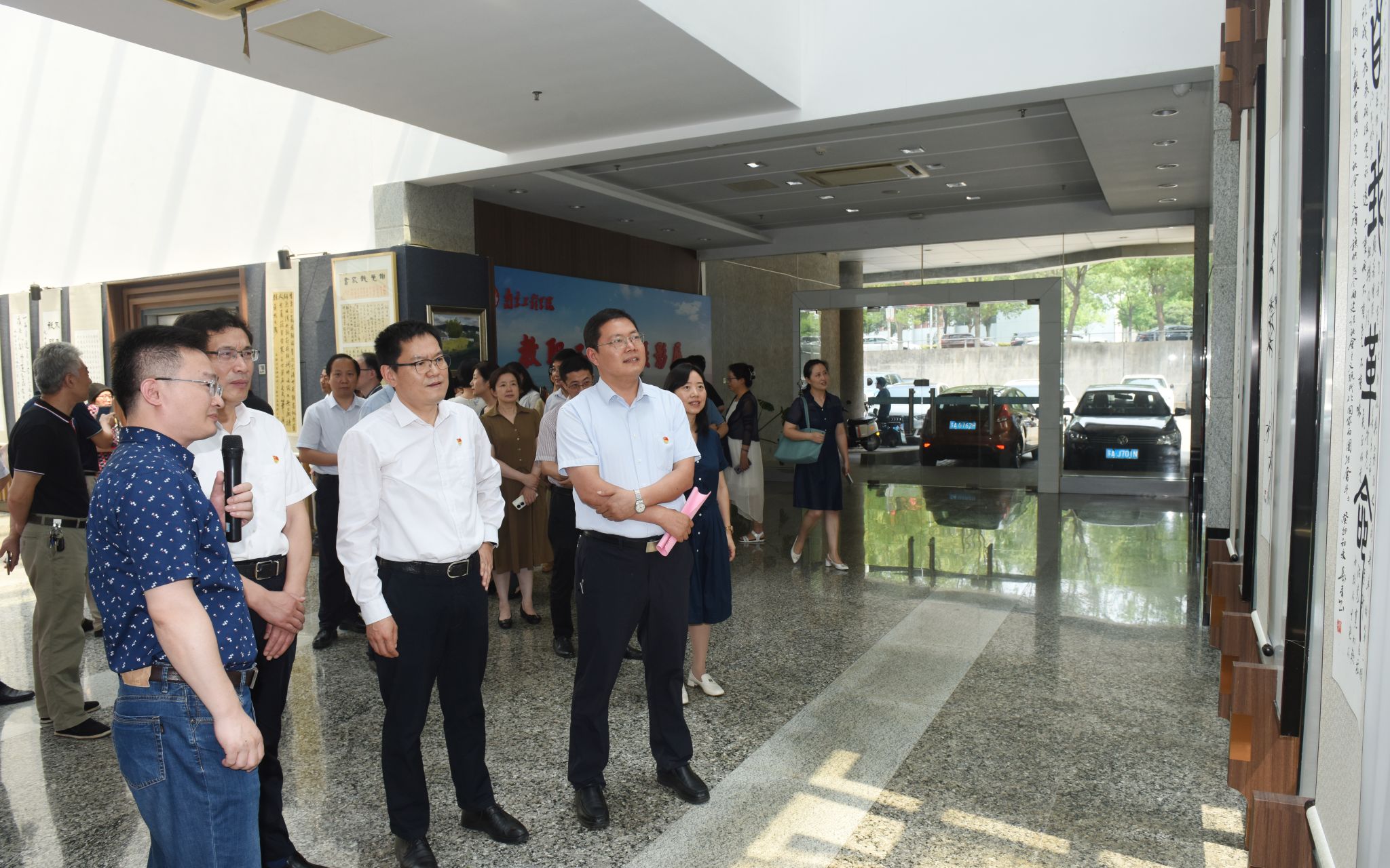 主办单位负责人、机关党委及党支部书记、教育教学单位党组织书记、分工会主席、教职工和学生代表等参加了开幕式。开幕式后,大家在参展作品前驻足欣赏、点评分享作品的精美精妙。