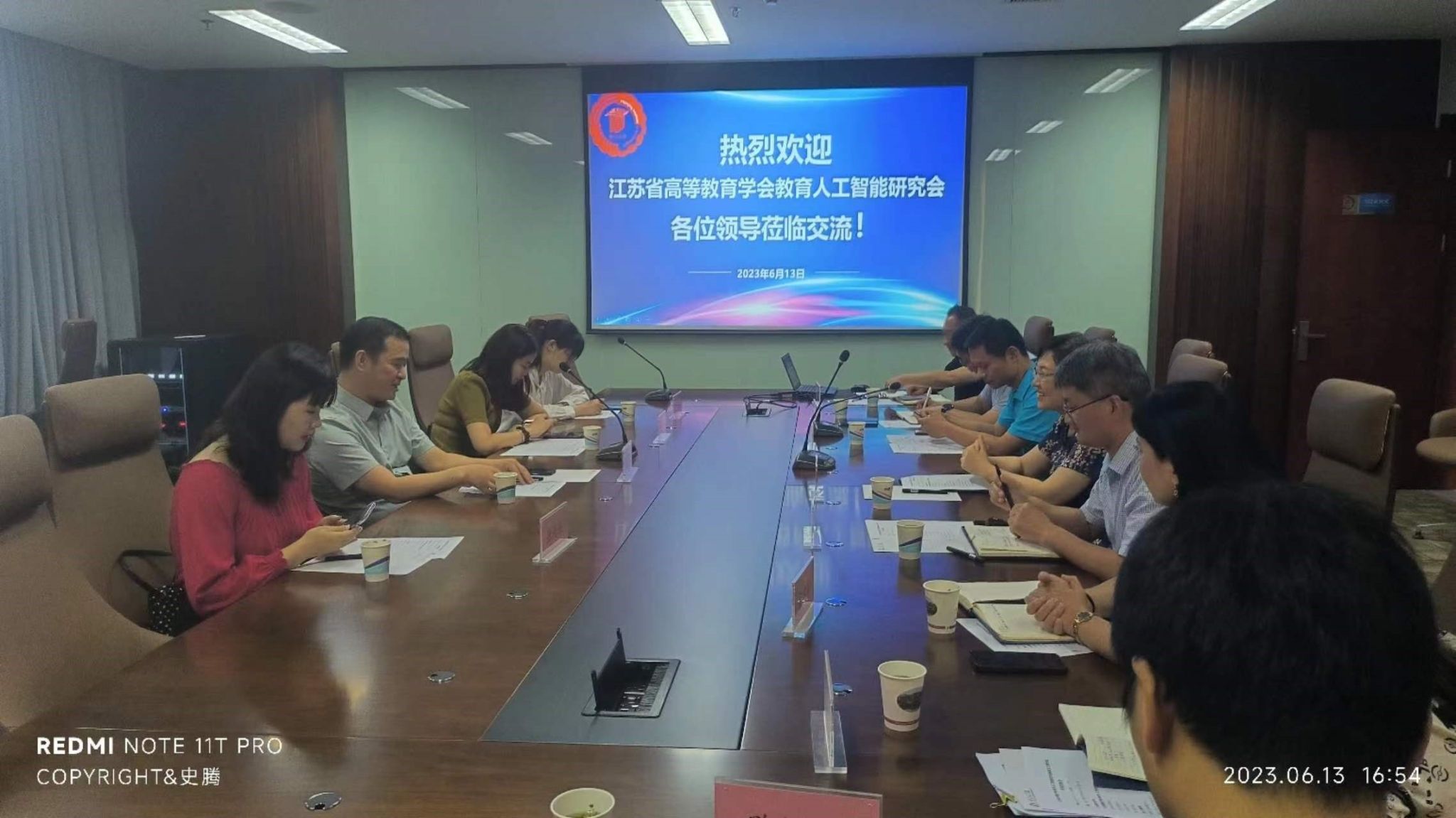6月13日下午,江苏省高等教育学会教育人工智能研究会赵峥涞副理事长带队来校走访交流,校党委副书记、副院长曹雪虹热情接待了来宾并座谈。