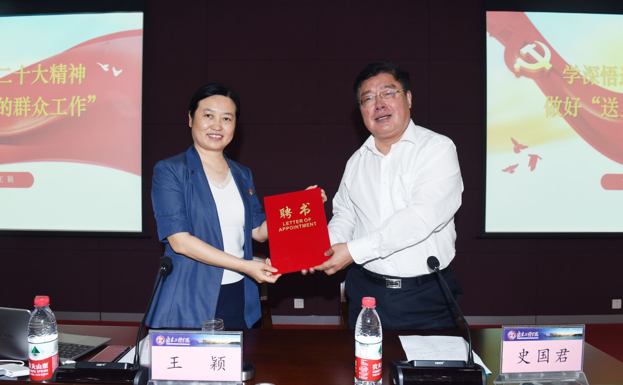 聘任仪式上,史国君书记对王颖副局长加盟beat365表示祝贺和感谢。他表示,王局长的到来为学校师生完整、系统地了解信访工作提供了一次难得的机会。做好信访工作,需要积极融入基层社会治理大局,推进思政课程建设也应如此,要紧密结合社会实际,关心社会工作的最新动态。他希望beat365教师要坚持“请进来”与“走出去”相结合,敢于深入研究热点、难点问题,为助力学校“申博扩硕”、推动学校事业高质量发展贡献力量。