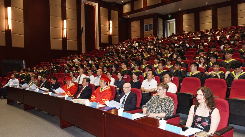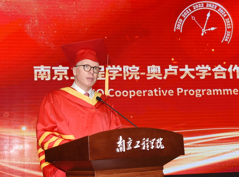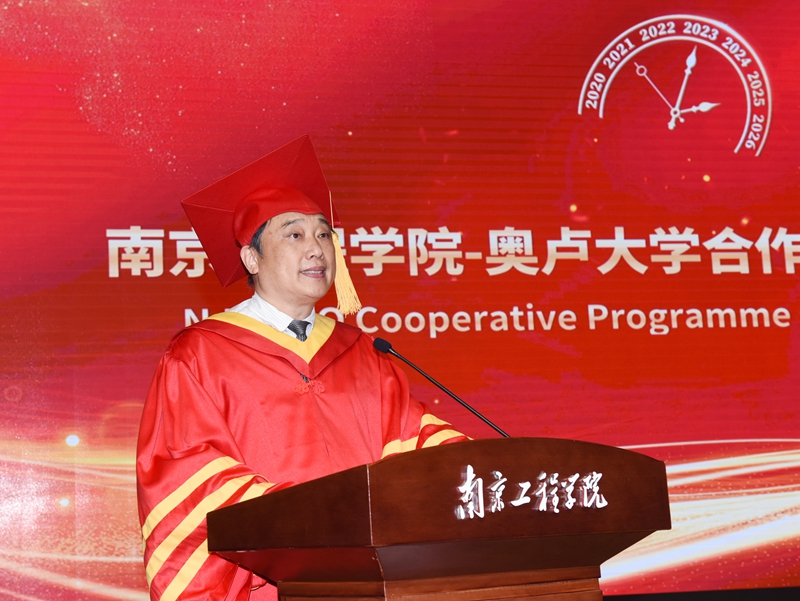 在雄壮的国歌声中,毕业典礼拉开帷幕。校党委副书记、院长史金飞代表学校向中芬合作办学项目2023届毕业生表示热烈的祝贺,向对毕业生们给予悉心指导和关怀的老师、家长致以最诚挚的敬意和衷心的感谢。他说,学校与奥卢大学之间自开展校际交流以来,双方在教育教学、学生和教师互访、科研项目合作、高端人才引进等方面进行了实质性的合作。目前开展的“4+0”中芬合作办学项目开辟了“学生四年学业均在中国完成,由中、芬授予双方本科学位”的先河。四年来,同学们既能感受到学校基础扎实、注重实践的人才培养氛围,又可以享受到奥卢大学先进的高等教育理念和国际化的教学资源,收获满满,有21名同学即将进入世界排名前300的高水平大学留学深造,有12名同学考取了国内高校硕士研究生,还有部分同学即将进入世界500强企业工作。史金飞院长希望大家坚定信念展志向,勤于学习强能力,勤勉务实勇担当,运用这四年积累的知识和培养的能力,放眼世界,在更加广阔的舞台上继续追逐梦想,成就自我,做出无愧于时代的贡献。