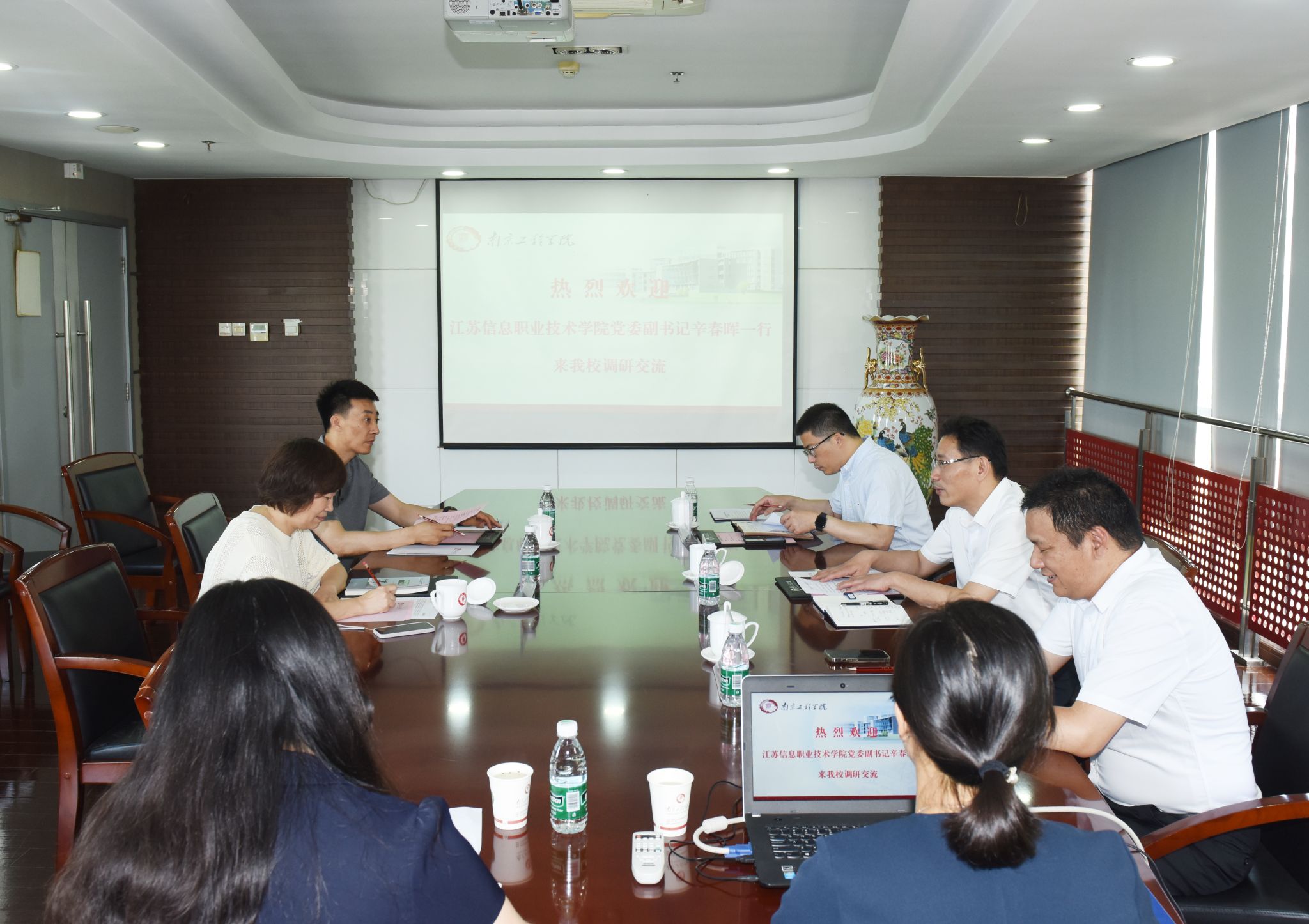 6月28日上午,江苏信息职业技术学院党委副书记辛春晖带队来校走访交流,beat365党委常委、副院长张仰飞在至勤楼·行政中心南301会议室热情接待了来宾并座谈。学生工作处、工业中心、创新创业学院等单位相关负责人参加座谈。