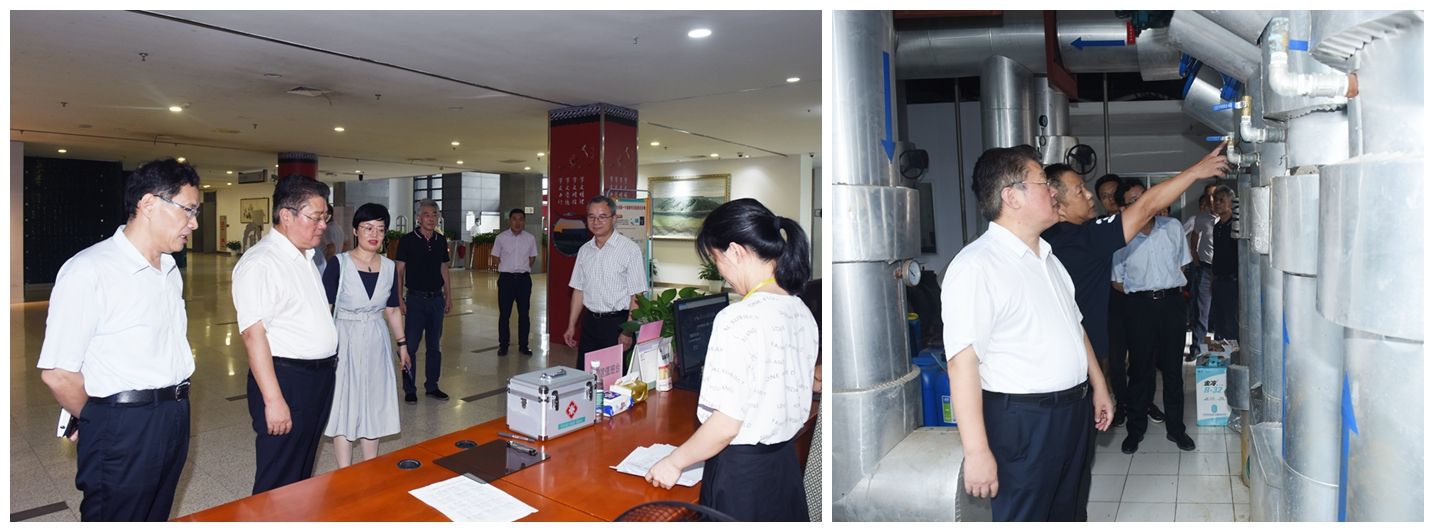 校领导们来到暑假期间正常开放的图书馆,亲切看望图书馆工作人员和在馆安静自习的留校学生,了解暑期开馆情况、师生入馆人数、选座系统和信息资源使用情况等,要求图书馆能及时根据师生需求,调整优化各项服务工作,为全校师生的教学科研学习提供全方位的信息资源与空间环境服务。校领导一行还重点察看了图书馆一楼地表水源热泵空调系统主机房,认真听取工作人员对图书馆空调目前整体运行情况的汇报,叮嘱后勤保障部门尽快就改善空调系统使用效果提出解决方案、拿出解决办法,尽最大努力为师生提供更好保障。