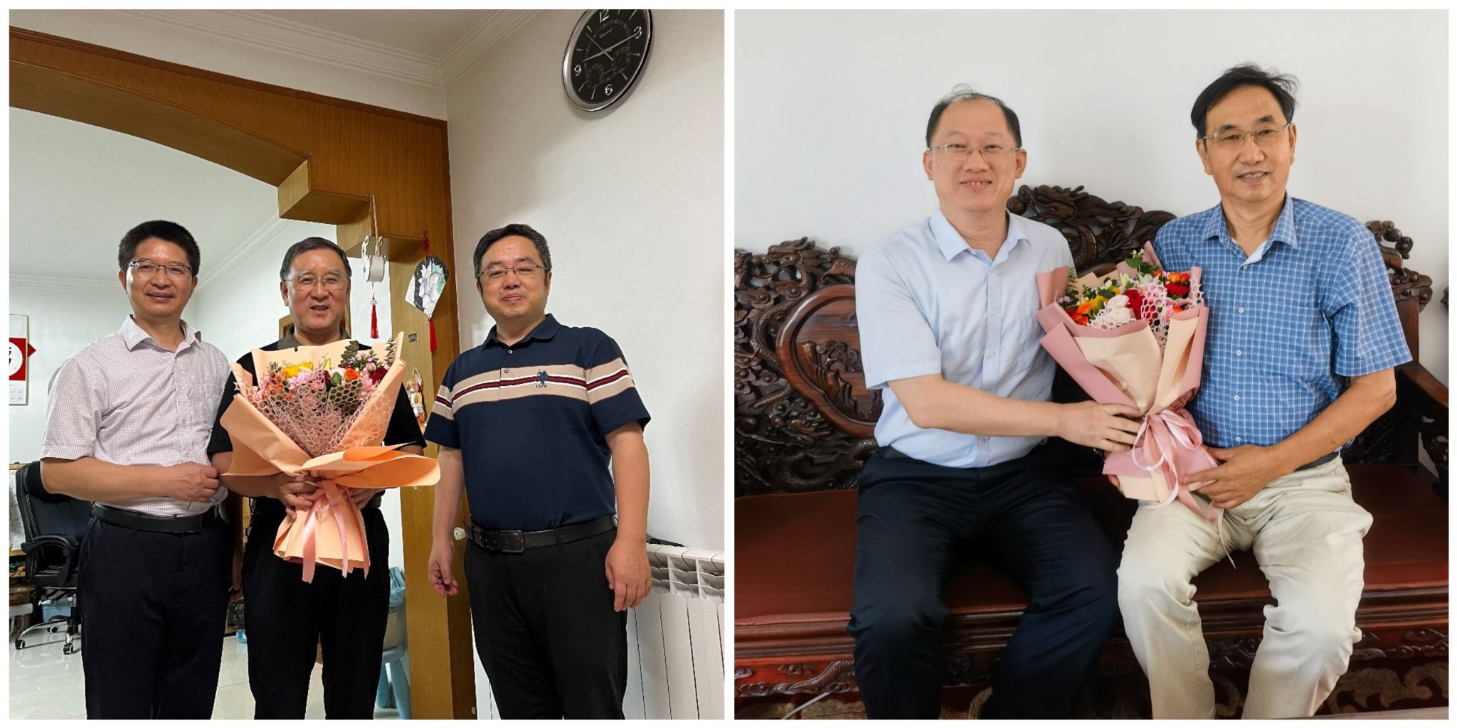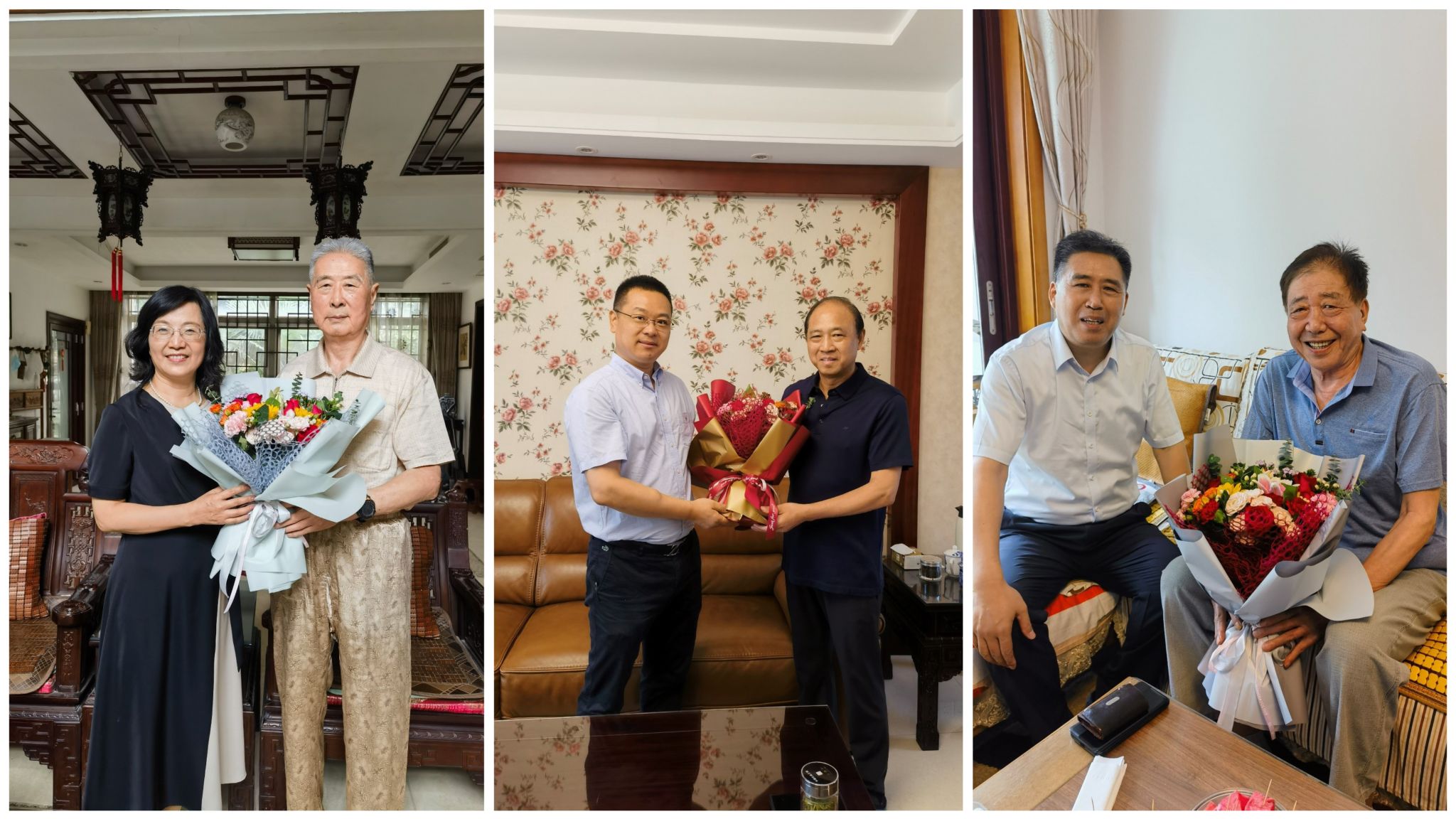 在老领导们家中,校领导们为他们献上鲜花,与他们亲切交谈,关心他们的饮食起居和身体状况,感谢大家多年来为学校事业发展做出的贡献,听取他们对学校工作的意见和建议,希望老领导们一如既往地关心、关注和支持学校各方面发展,多为学校高质量发展献计献策。