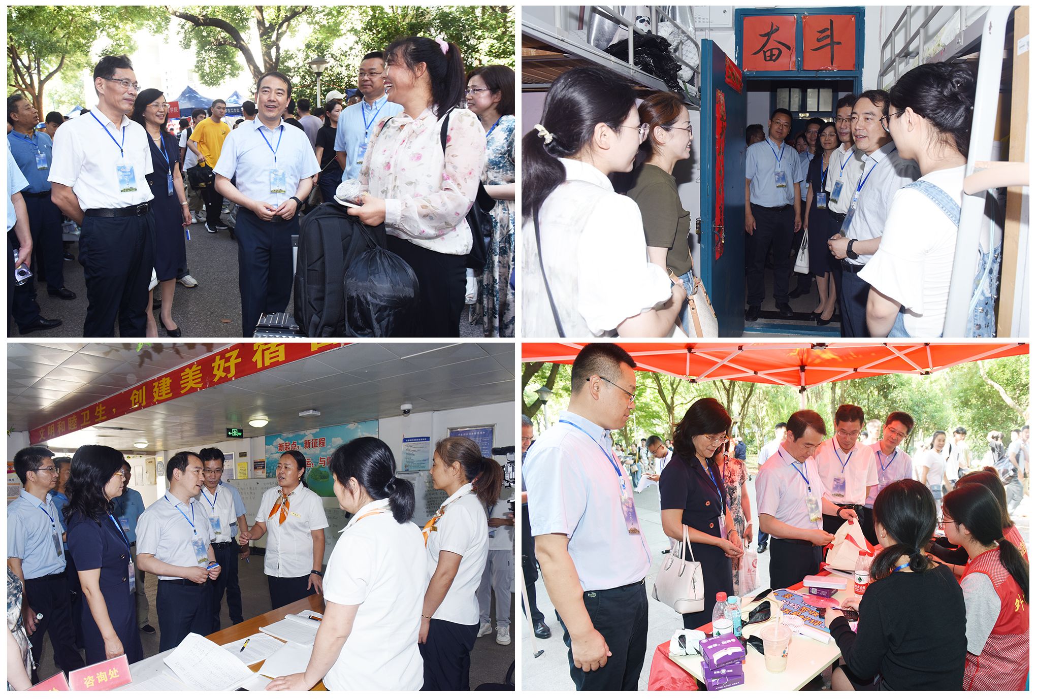 为了让新生和家长有到“家”的感觉,校领导孙爱武、张仰飞、汪群、陆华良、朱松青一大早就来到2号门、4号门、体育馆人脸识别处、学生宿舍报到处等地,了解迎新工作开展情况,慰问参与迎新工作的师生,并与家长和新同学交谈。“路上还顺利吗”“天热,注意防暑”“放心,我们有小公交帮忙运送行李”……校领导们鼓励新同学勇于攻坚克难,奋发图强,以积极健康、乐观豁达的心态和追求卓越的精神迎接即将开启的大学生活。“看到这么多老师和同学忙前忙后,我们很感动,也很放心。希望我的孩子不浪费韶华,不辜负自己,成长为对社会有用的人。”来自黑龙江的一位家长说道。