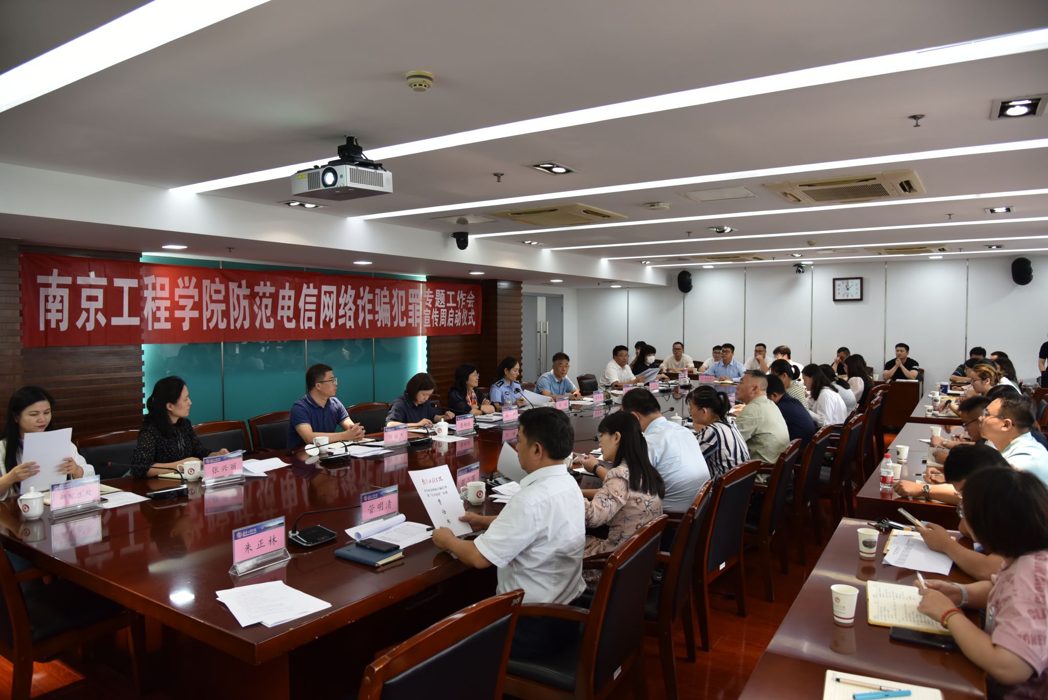 为进一步加强beat365防范电信网络诈骗犯罪工作,切实维护广大师生切身利益,创建“无诈校园”,9月20日上午,学校召开防范电信网络诈骗犯罪专题工作会暨宣传周启动仪式。校党委常委、副校长汪群出席活动并讲话,江宁高新区派出所副所长李琳应邀参加活动。学生工作处、保卫处负责人及相关科室人员,研究生处、各学院(中心)分管学生工作负责人及负责反诈工作辅导员,“反诈宣传员”学生志愿者代表参加会议。