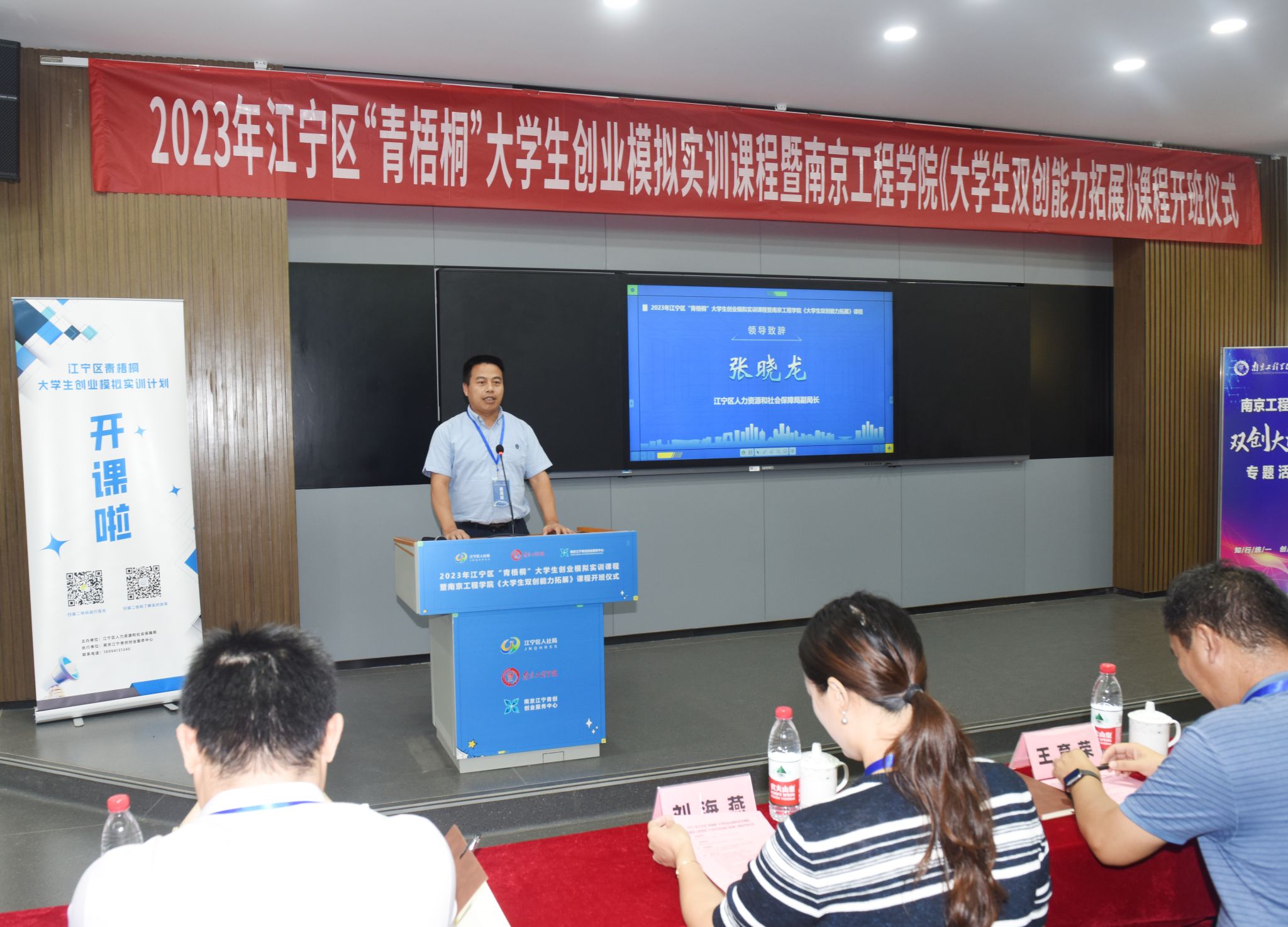 9月20日下午,2023年江宁区“青梧桐”大学生创业模拟实训课程暨beat365官方网站《大学生双创能力拓展》课程班在创新创业学院路演大厅举行开班仪式。党委常委、副校长朱松青,江宁区人力资源和社会保障局副局长张晓龙,教务处、工业中心、创新创业学院相关负责人、教师和27名学员参加开班仪式。