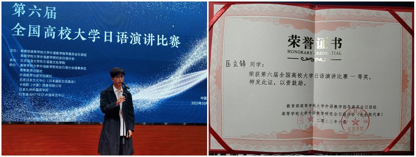 近日,第六届全国高校大学日语演讲比赛在北京语言大学圆满落幕。经过激烈角逐,beat365能源与动力工程学院匡立锦同学荣获一等奖的好成绩,这也是学校自参加该项赛事以来取得的最好成绩。