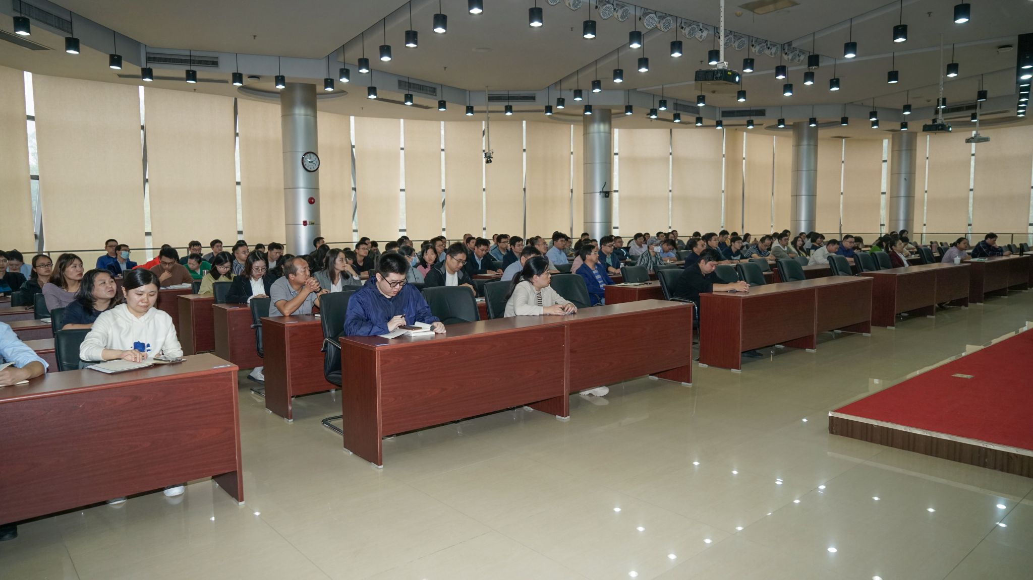 学校相关二级教育教学单位、研究院分管科研工作负责人、科技与产业处相关人员、近200名教师聆听报告。