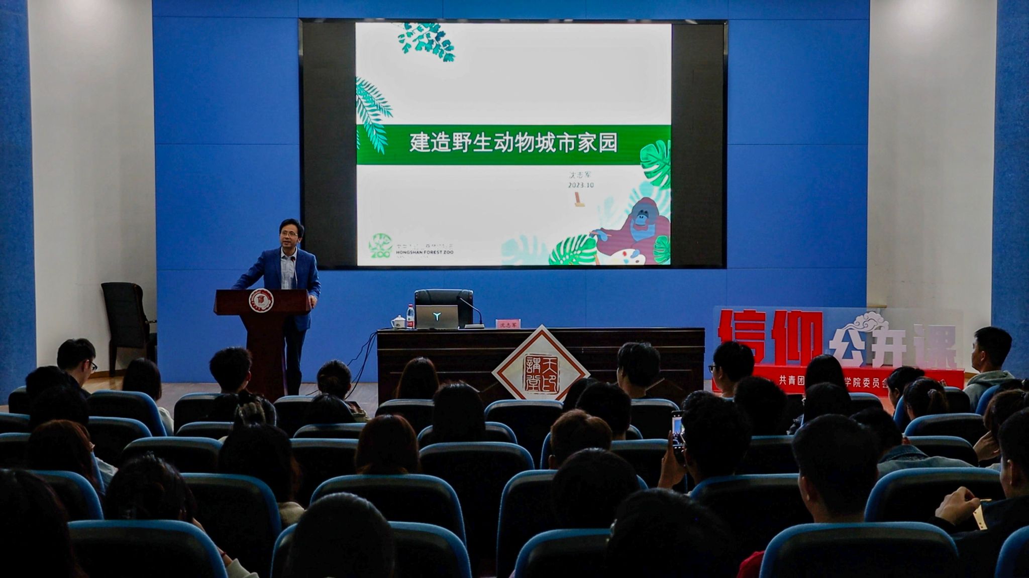 10月26日晚,beat3652023-2024学年首场天印讲堂暨信仰公开课在图书馆报告厅举行。南京市红山森林动物园园长沈志军以“建造野生动物城市家园”为题,将beat365200余名师生带入动物的世界,领略红山森林动物园缔造的野生动物城市家园。