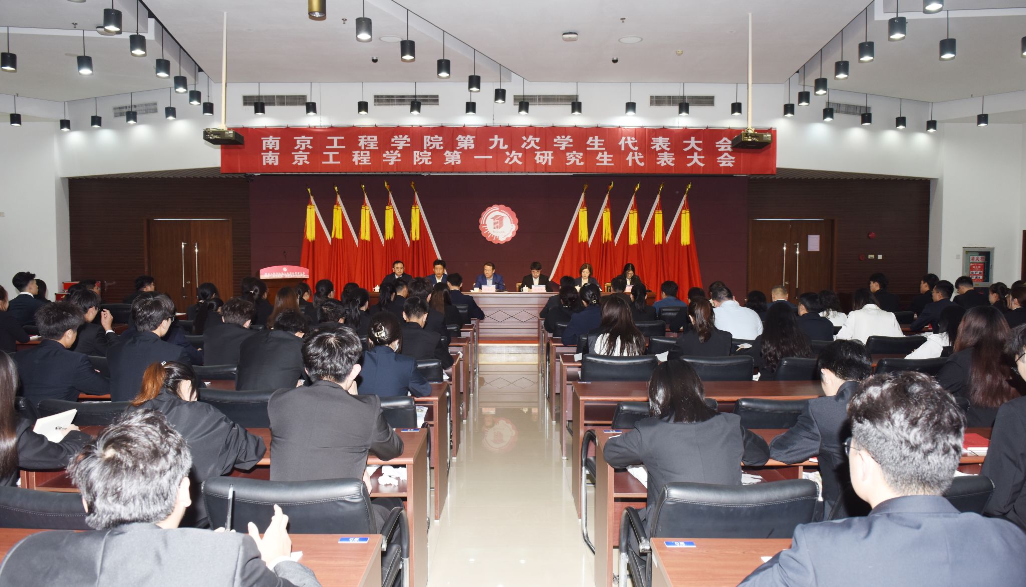 11月1日,学校第九次学生代表大会、第一次研究生代表大会在至勤楼•行政中心二楼多功能厅召开。党委书记孙爱武、省学联驻会执行主席王海彭、河海大学学生会主席团成员席皓,学校相关职能部门负责人、各学院(中心)学生工作负责人、各二级基层团组织负责人以及全体青年代表共同出席会议。