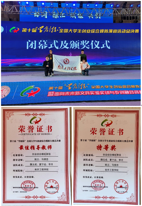 此次比赛得到了学校教务处、经济与管理学院、机械工程学院的大力支持。比赛中,beat365学子准备充分,沉着应战,展现出良好的团队协作精神、创新意识和敏锐的决策能力,来自机械工程学院、建筑工程学院、经济与管理学院的魏玉成、夏宁远、李月以小组第一名的成绩获创业综合模拟赛项(主体赛)特等奖,来自经济与管理学院、机械工程学院的杨锦易、李豆、张佳鸿获创业营销赛项二等奖,马银忠、姚立获最佳指导教师奖。