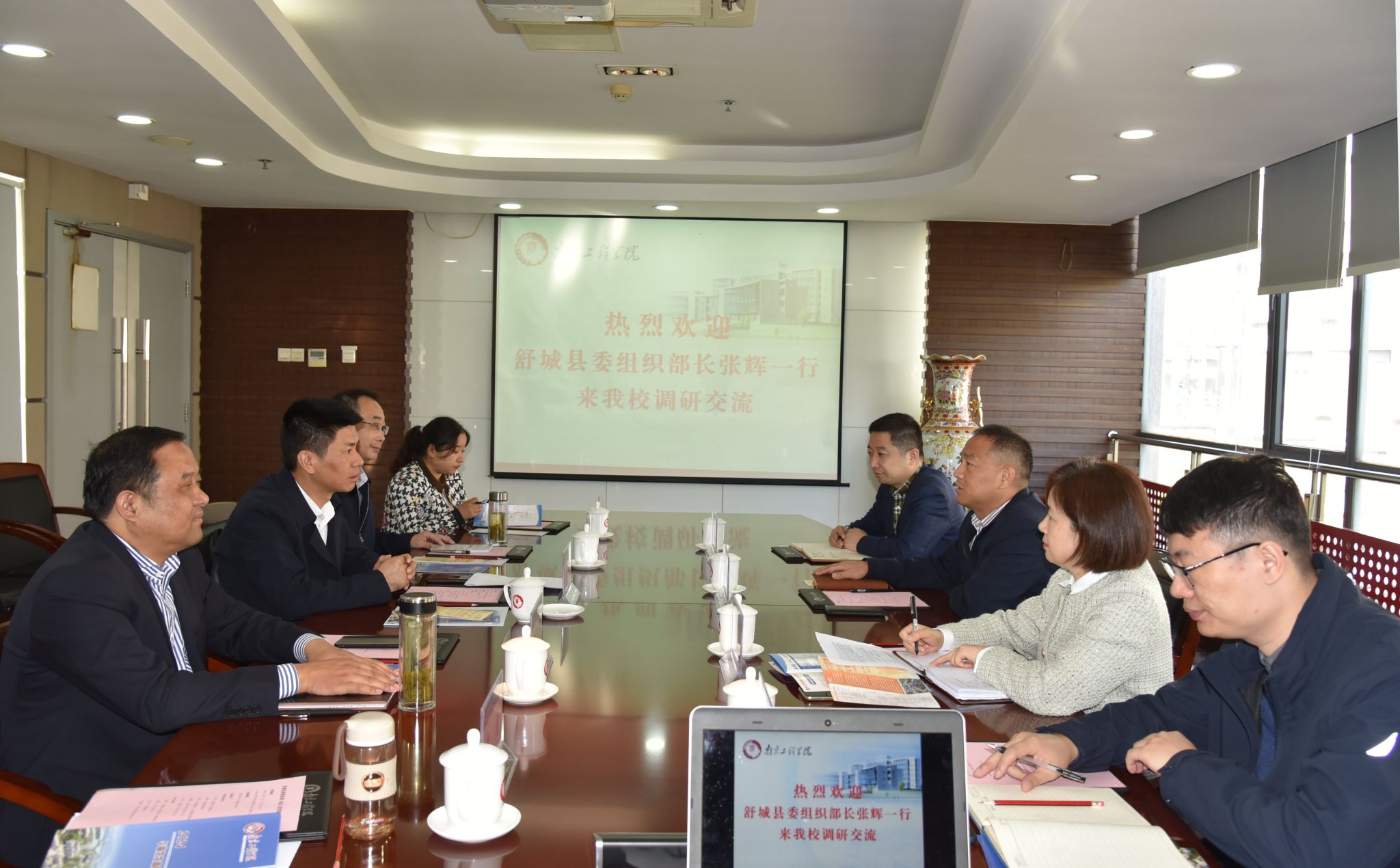 11月7日上午,安徽舒城县县委常委、组织部长张辉一行5人来校走访交流。党委常委、组织部部长聂邦军在至勤楼·行政北楼301会议室热情接待了来宾并座谈。学生工作处负责人参加座谈会。