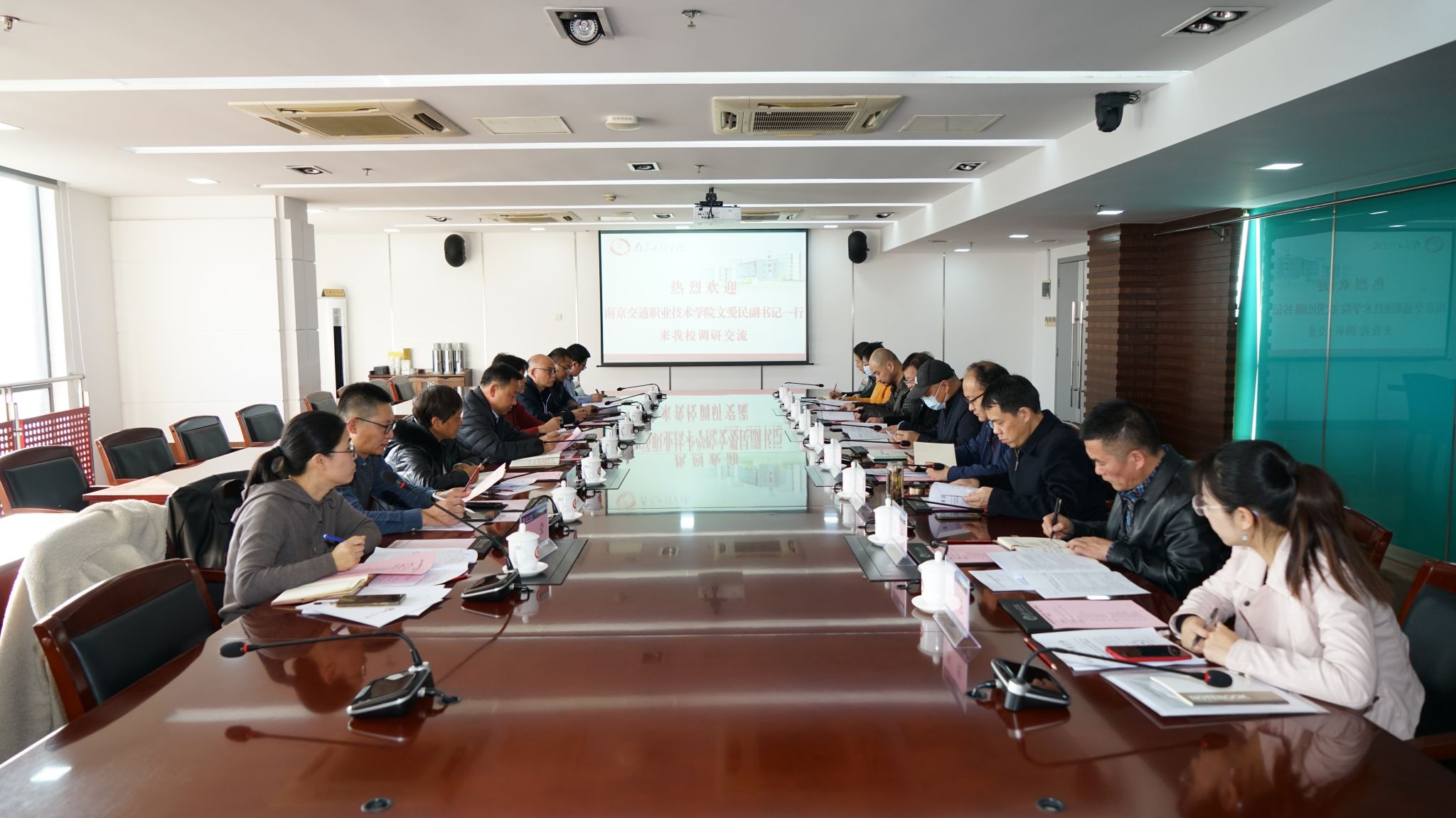 11月21日下午,南京交通职业技术学院党委副书记文爱民一行来beat365就两校实施中的省职业教育体系贯通培养项目开展研讨交流交流。学校组织发展与对外合作处、教务处和校内承担相关项目的经济与管理学院、建筑工程学院、汽车与轨道交通学院、艺术与设计学院负责人,在至勤楼·行政中心北楼303会议室热情接待了来宾并座谈。