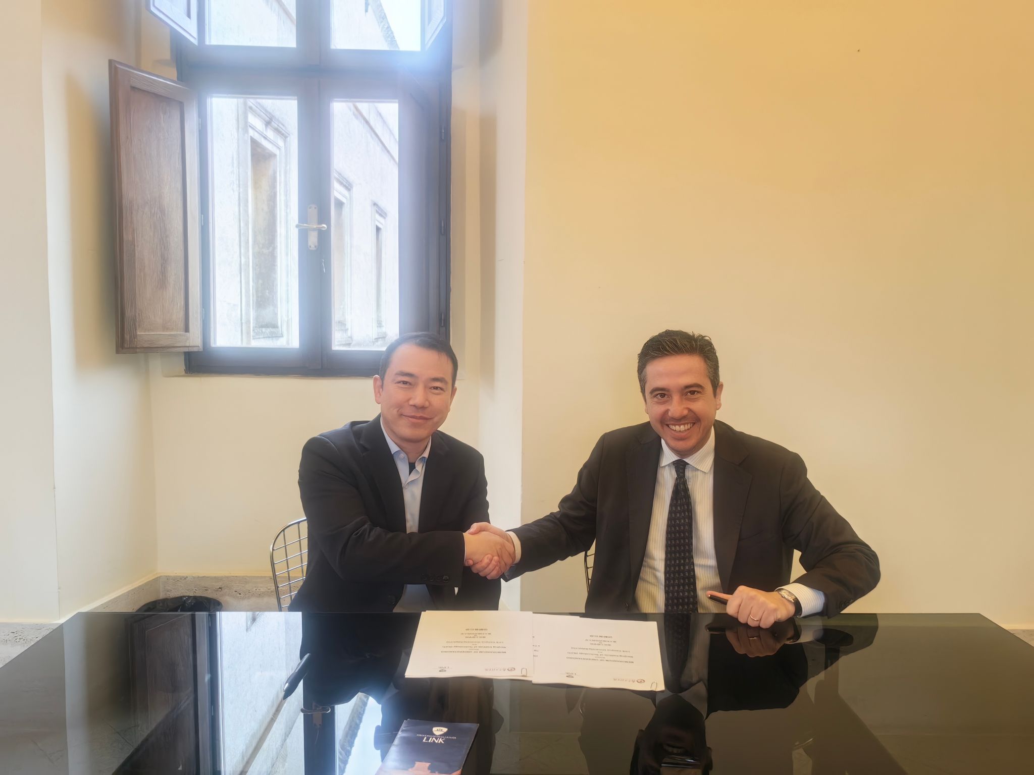 11月30日,代表团访问意大利联合校园大学,孙爱武与校长Pietro Luigi Polidori签署合作框架协议。双方分享了教育创新和国际合作发展、学校与学生管理的经验,并就在“国际经济与贸易”“视觉传达设计(数字传媒)”等专业的学分互认、学期间交换生、教师互访等方面进行友好交流。