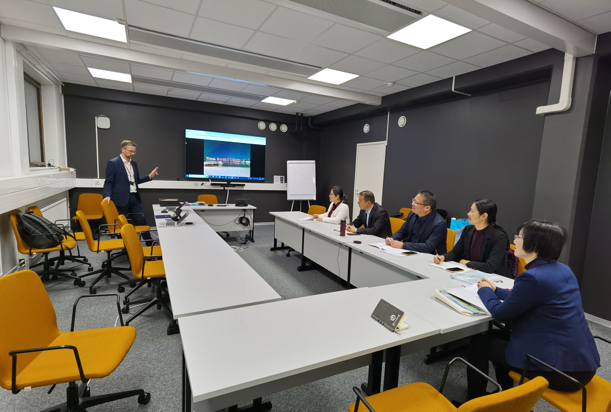 27日下午,代表团访问了奥卢应用科学大学,听取了该校在教学方法、创新课程设置、学生创业实习等方面的办学特色介绍。双方表示,希望未来能围绕交换生项目,在培养学生全球视野、实践能力、创新创业能力等方面进一步加强交流。