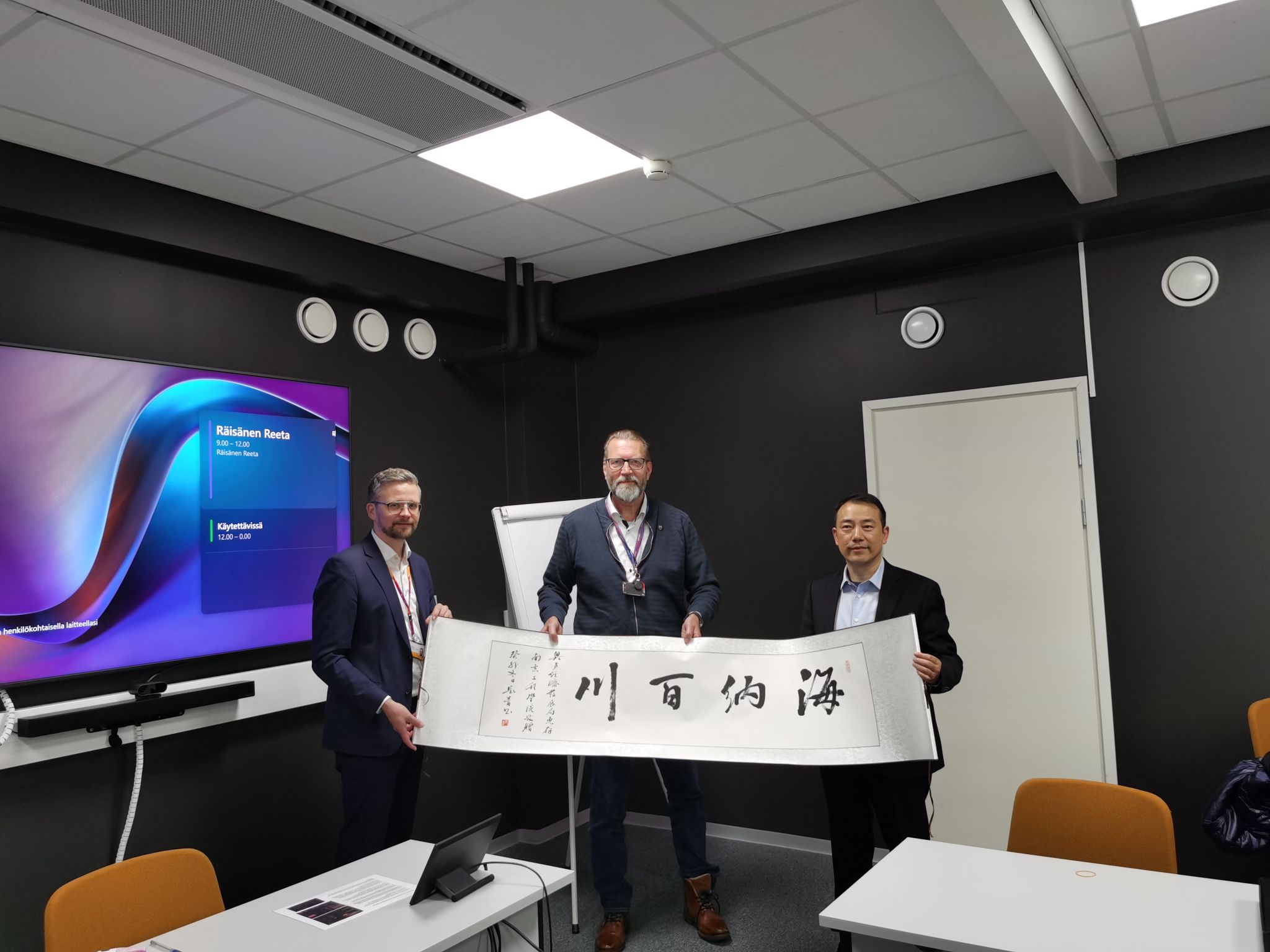 在访问奥卢大学期间,代表团一行受到校长Jouko Niinimaki和副校长Tapio Koivu的热情接待。双方举行了2023年beat365官方网站-奥卢大学合作办学联合管理委员会会议,审议了2023年度beat365官方网站-奥卢大学合作办学年度报告、讨论了奥卢学院2023年招生情况通报和2024年招生计划、听取了学生评价意见和建议,并就两校开展交换生项目与教师互访、建立两校联合研究中心、联合培养硕士和博士生等事宜进行深入研讨和磋商。