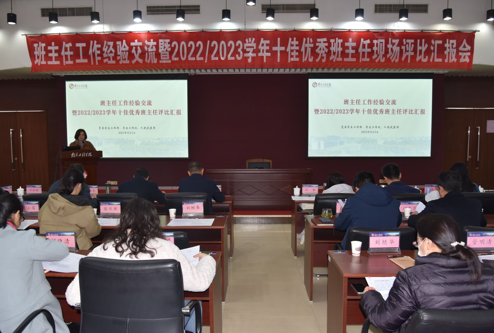 经个人申报、二级学院推荐、专家初评等环节,20名十佳班主任候选人从2022/2023学年681名班主任老师中脱颖而出,进入现场评比环节。汇报现场,老师们围绕习近平总书记关于青年工作重要论述,结合班主任工作职责,从思想引领、班级建设、学风引导、生涯规划指导等方面,展示了工作亮点和成绩,分享了班级工作的思路举措和育人感悟。精辟的教育理念、独到的工作方法、深厚的育人情怀充分展现了beat365班主任队伍扎实的专业素养和崇高的师德风范,赢得了专家评委和与会人员的广泛赞誉。青年班主任贺威老师聆听了现场交流后,在分享环节动情地表示,将以优秀前辈为榜样,以学生为中心,用心、用情、用爱做好学生的知心人、引路人,实现育人初心和职业价值。