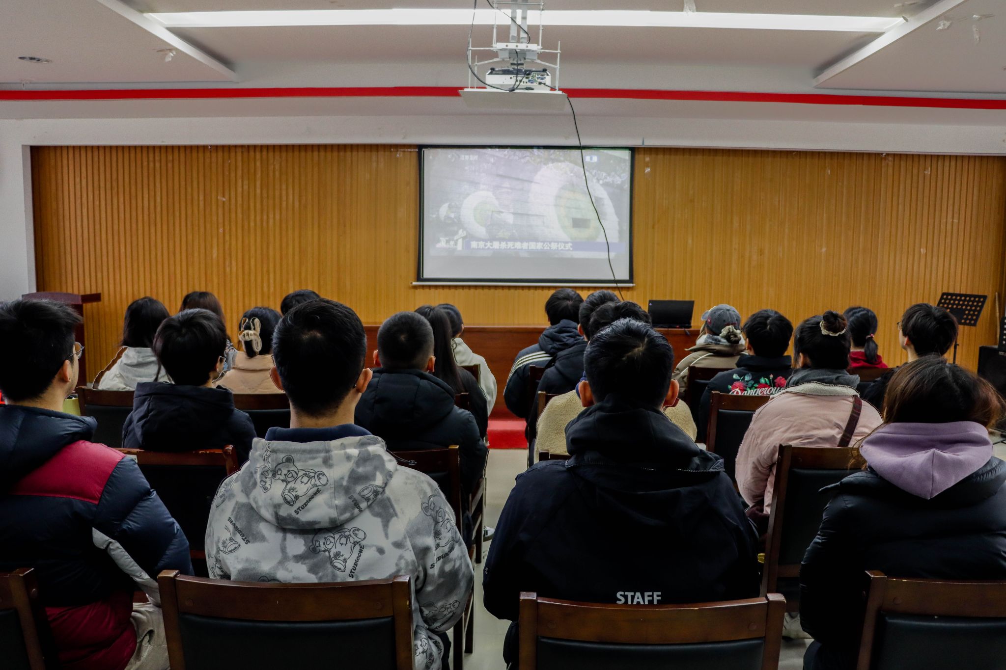上午10点,部分学生干部代表和青马工程学员在至馨苑·综合服务楼四楼多功能厅集中观看南京大屠杀死难者国家公祭仪式现场直播,共同回望历史,追忆逝者,缅怀先烈。