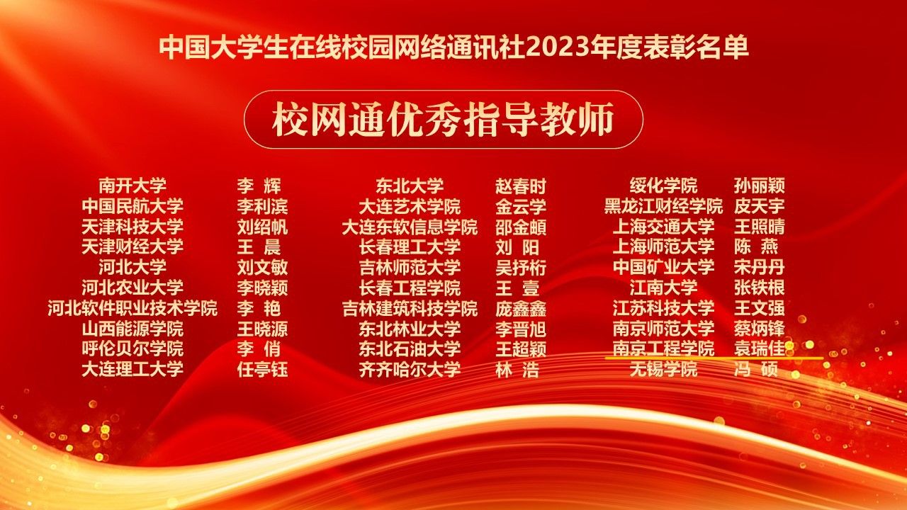 近日,教育部中国大学生在线公布2023年度校园网络通讯社及校园行活动表彰名单,beat365官方网站获评“优秀校网通站”,党委宣传部袁瑞佳老师荣获“校网通优秀指导教师”,校融媒体中心王俊杰同学荣获“优秀校园媒体人”称号。