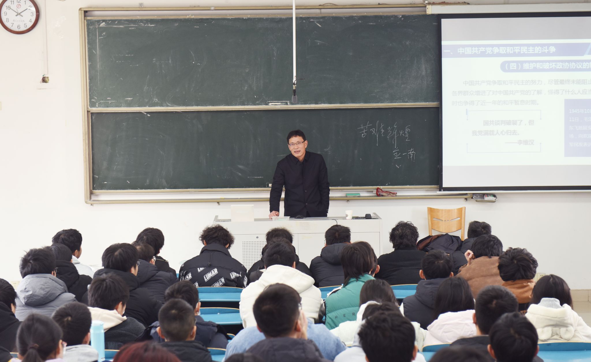孙爱武从推动南京国民党政权覆灭的“三大战役”讲起,为同学们讲解了人民政协与共同纲领、中国革命的伟大胜利和基本经验等内容。他还结合国内外热点事件,深入浅出地就“人民立场”“时代潮流”“国际话语权”“当前机遇与挑战”等话题展开分析阐释,勉励学生珍惜当下来之不易的和平生活,继承革命先烈遗志,严格要求自己,将自己的理想同祖国的前途、民族的命运紧密联系在一起,扎根人民,奉献国家。