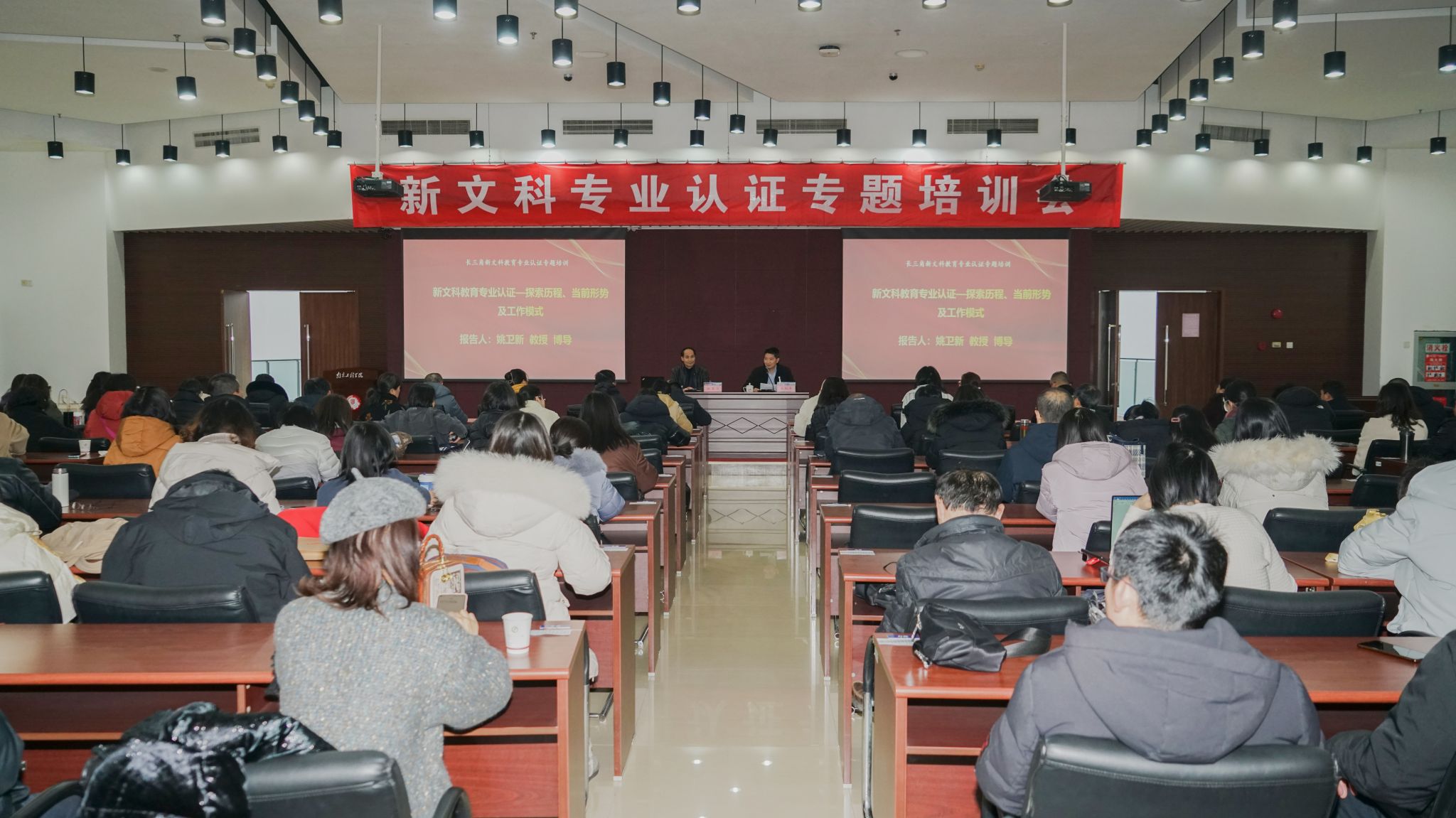 为了加强新文科专业内涵建设,提升专业建设水平,进一步推进学校教育教学质量发展,12月27日,学校召开新文科专业认证专题培训会。培训会邀请长三角新文科教育专业认证联盟理事长、东华大学教学委员会副主任姚卫新教授主讲,党委常委、副校长朱松青主持会议并讲话。