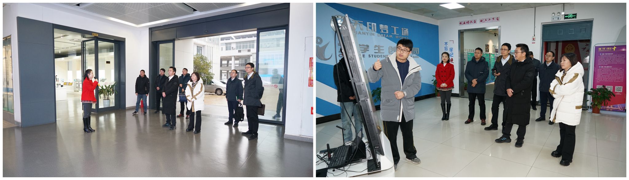 会前,谢火木一行实地考察参观了创新创业学院和大学生创业园“天印梦工场”。党办校办、团委主要负责人陪同参观。