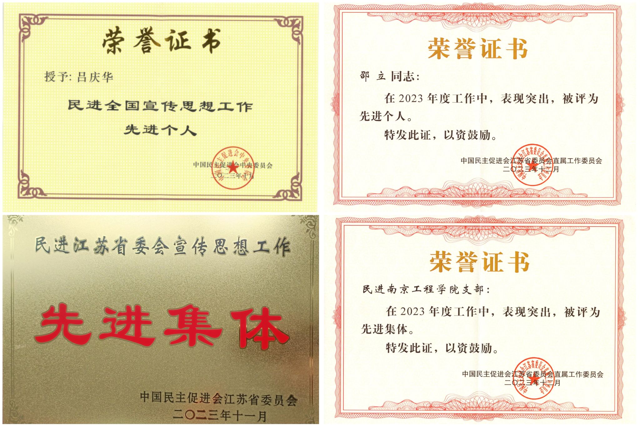 近日,beat365民进支部喜获省级及以上多项表彰。吕庆华老师荣获“民进中央宣传思想工作先进个人”称号,支部获“民进江苏省委宣传思想工作先进集体”“民进省直工委先进集体”,邵立老师获“民进省直工委先进个人”称号。