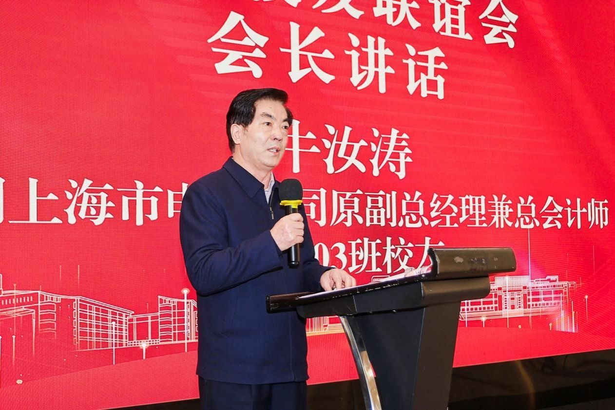 上海校友联谊会首任会长牛汝涛代表第一届校友会理事会讲话。他对远道而来的母校老师和兄弟联谊会代表表示衷心感谢,并表示上海校友联谊会的成立,架起了上海校友与母校沟通的桥梁,搭建了校友之间的交流信息、资源拓展、联络感情的平台,筑起了校友们共同的精神家园。他将团结联谊会全体成员,充分发挥校友联谊会的桥梁纽带作用,促进母校与上海校友及社会各界之间的沟通和联系,为上海地方经济发展、为母校事业发展不懈努力。