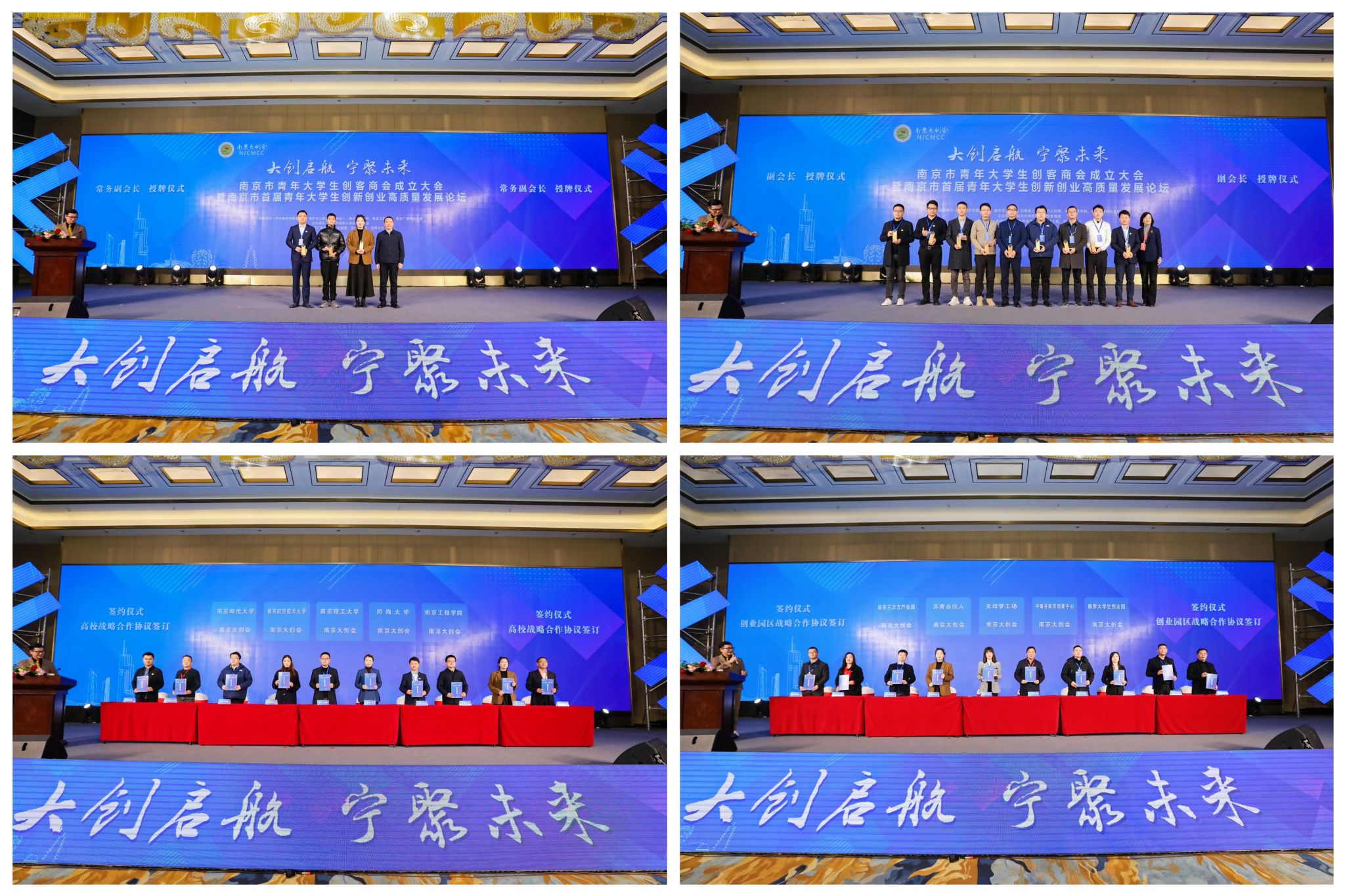 与会领导共同为南京市青年大学生创客商会揭牌,为南京市青年大学生创客商会常务副会长、副会长授牌。会上,南京市青年大学生创客商会与beat365签订《高校商会战略合作协议》,与大学生创业园“天印梦工场”签订《创业园区商会战略合作协议》。