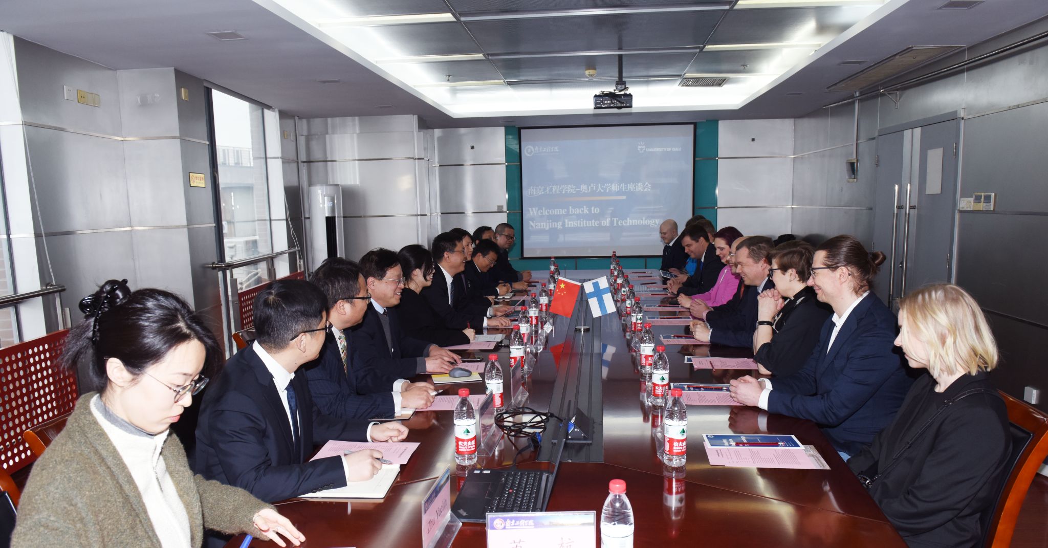 濮励杰对奥卢大学师生的到访表示热烈欢迎,对双方合作过程中奥卢大学给予的积极支持和任课教师的辛苦付出表示感谢。他回顾了学校与奥卢大学8年的合作历程,并指出,两校在长期合作过程中达成了众多共识,结下了深厚情谊,合作成效显著,双方共同举办的南工程-奥卢学院已成为中芬高等教育合作的楷模与典范。就深化两校合作,濮励杰提出四点期待:要持续优化提升现有合作专业的教学管理质量,鼓励双方教师融合国际前沿教学理念进行创新实践;要增进奥卢大学更多相关学院对beat365的认可度,拓宽合作学科领域;要深化科研合作,积极推动联合科研项目培育、博士研究生联合培养;要加强平台建设,通过在奥卢大学建立海外培训基地和引智基地,深化师生交流与务实合作。