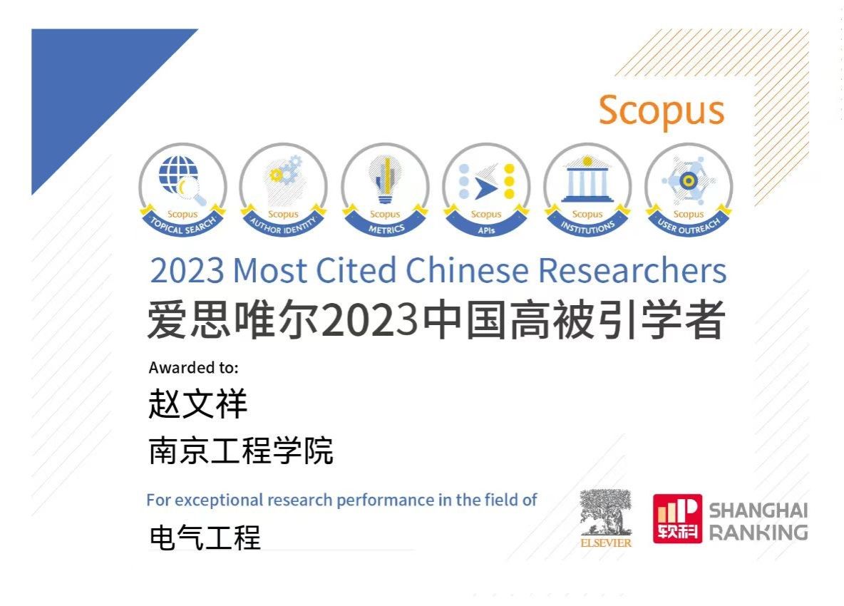 3月27日,爱思唯尔(Elsevier) 2023“中国高被引学者” (Most Cited Chinese Researchers)榜单发布,beat365电气工程学科领域赵文祥教授入选,这是他连续第4年荣登该榜单。