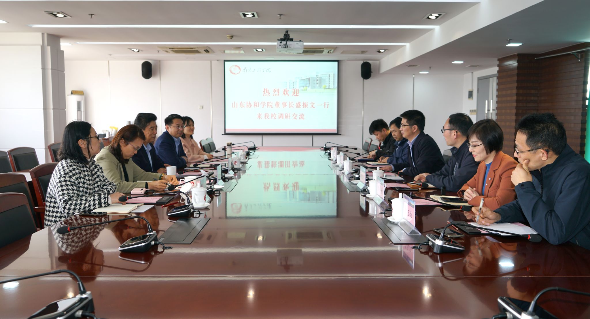 3月28日下午,山东协和学院创办人盛振文、副校长李风燕一行来beat365调研交流。beat365党委常委、副校长朱松青在至勤楼·行政北楼303会议室热情接待了来宾并座谈。