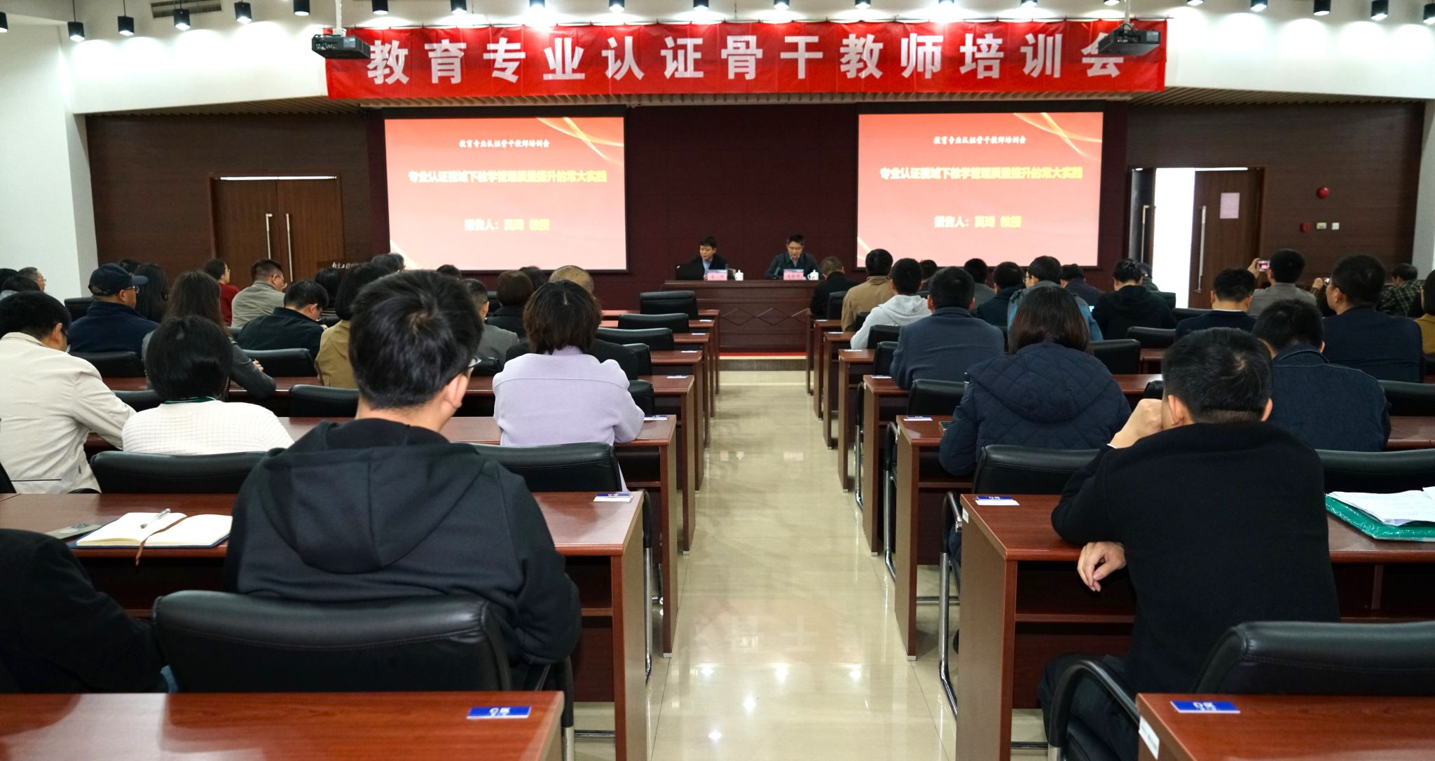 为进一步落实学校第四次党代会精神,深入贯彻OBE理念、全面推进三级专业认证评估,4月3日,beat365召开教育专业认证骨干教师培训会。培训会邀请到教育专业认证领域专家、常州大学教务处处长、产教融合教育办公室主任莫琦教授主讲,党委常委、副校长朱松青主持会议并讲话。