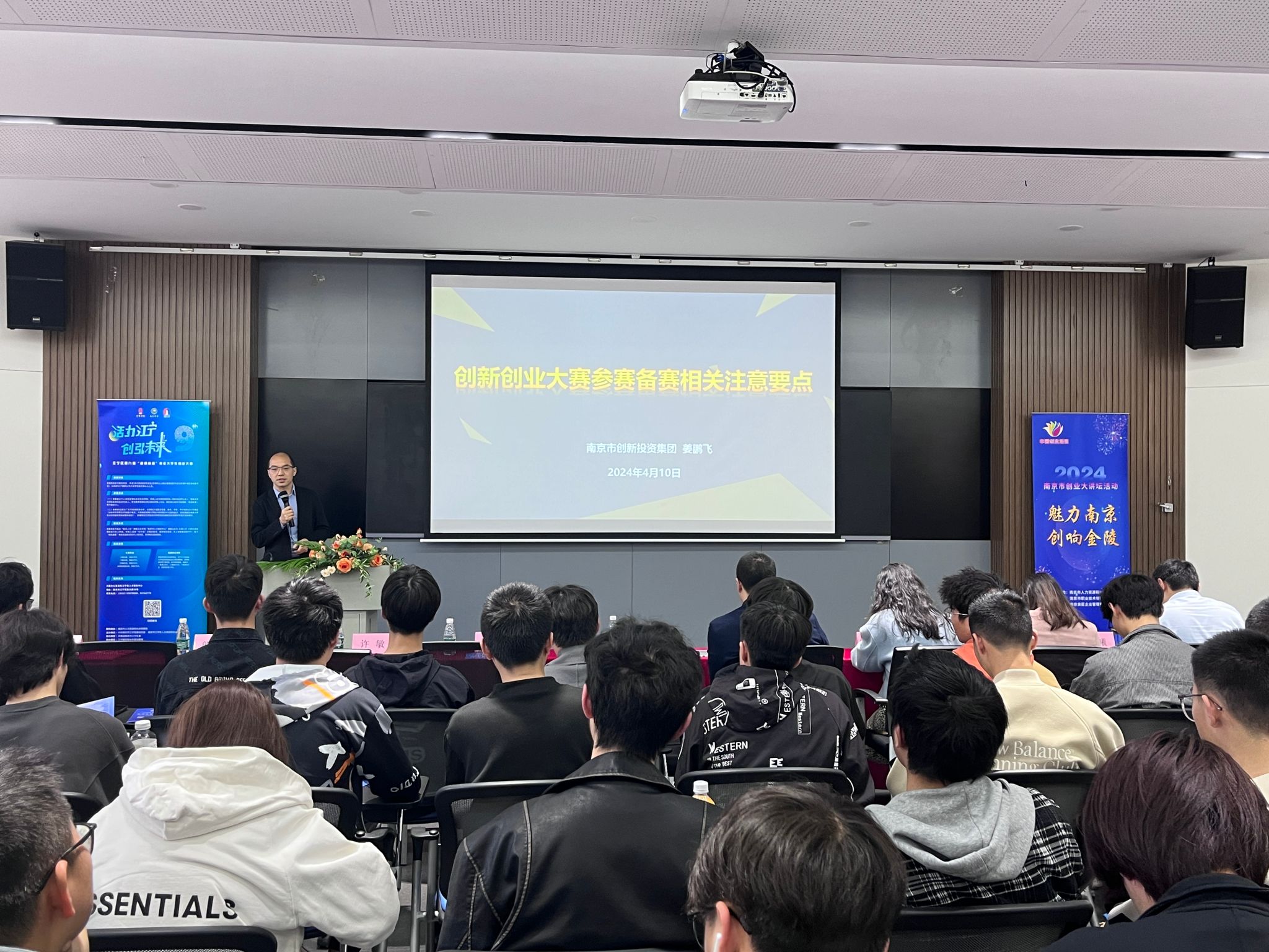 活动中,南京市职业技术培训指导中心和区人社局工作人员分别就南京市创业培训政策、江宁区区情和“梧桐林杯”青年大学生创业大赛奖励扶持政策向全体参会人员做详细解说,并勉励在场学生要勇立双创潮头,成为南京引领国家创新型城市建设的参与者、奋进者、实践者。