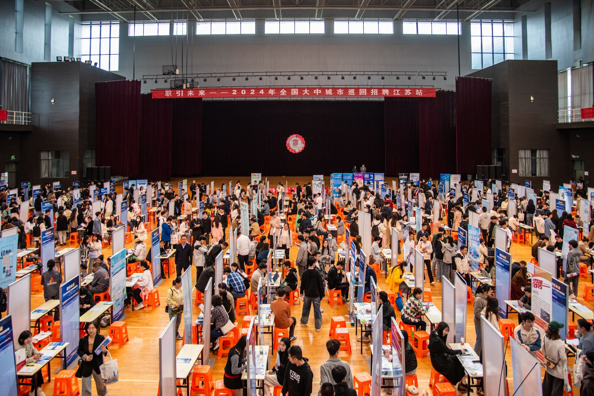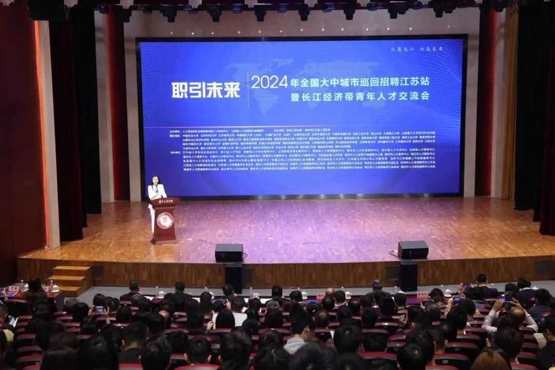 4月20日,职引未来——2024年全国大中城市巡回招聘江苏站活动暨长江经济带青年人才交流会在beat365举办。人力资源和社会保障部全国人才流动中心主任杨刚基,办公室主任、毕业生就业服务处处长李红义,毕业生就业服务处就业服务部主管贾巍;国家发展和改革委员会中国长江经济带发展研究院院长袁羽钧,区域经济研究中心主任刘畅;江苏省人力资源和社会保障厅党组成员、副厅长顾潮,南京市江宁区区长黄成文,重庆三峡学院党委常委、副校长臧小林,张家港市委常委、副市长李炳龙;beat365党委书记孙爱武,党委常委、副校长汪群出席活动。来自省内外21家人社部门、39所高校、500多家优质企业、17个公共就业人才服务机构的代表们,学校党办校办、学生工作处、各二级学院学生工作负责人、就业辅导员以及省内各高校毕业生参加活动。