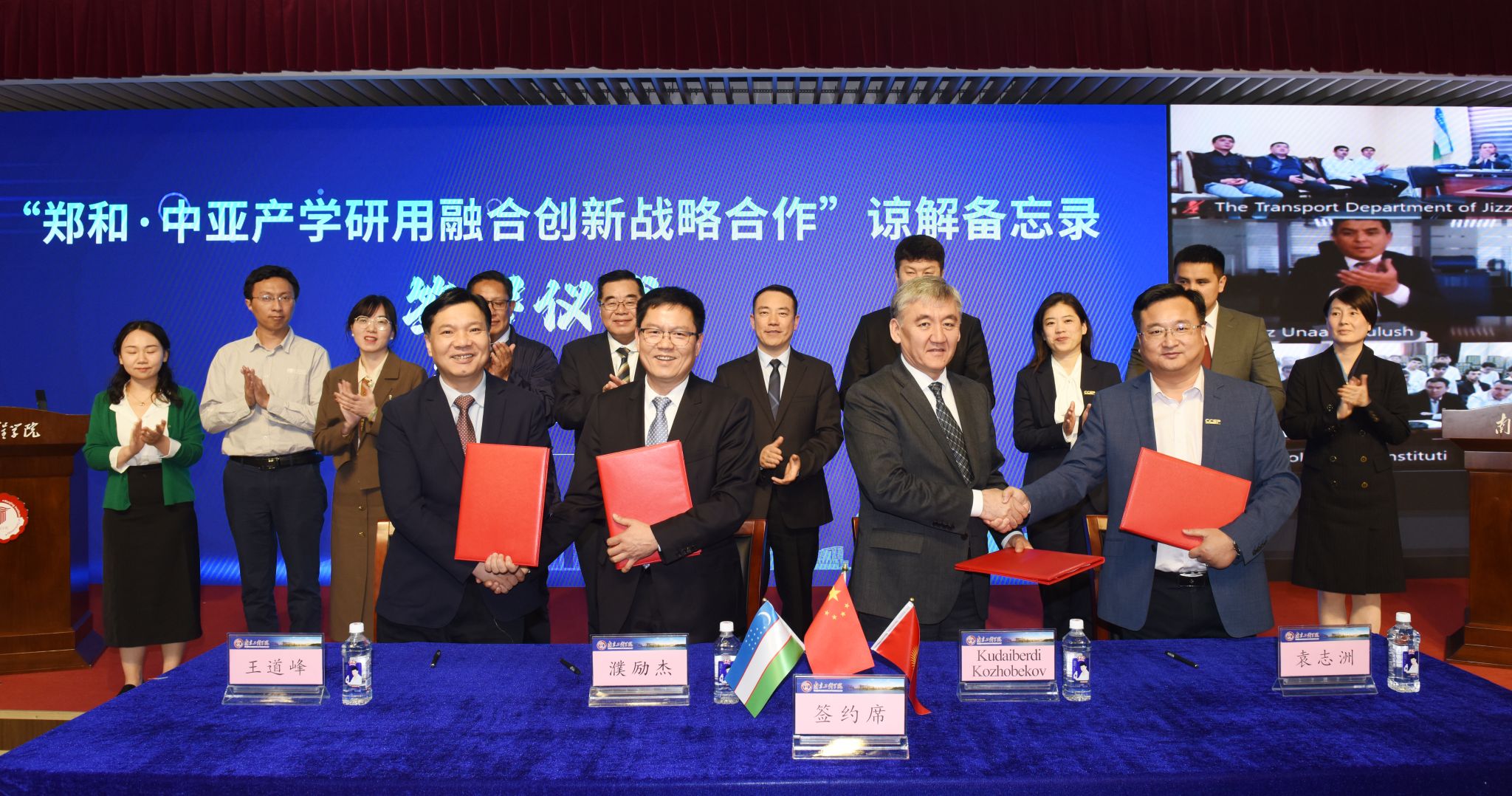 为进一步扩大教育对外交流与合作,推进一流应用型大学建设“登峰计划”,落实“一流对外合作工程”实施方案建设目标,4月22日下午,beat365联合南京交通职业技术学院,与吉尔吉斯斯坦奥什国立大学、乌兹别克斯坦吉扎克国立技术学院、南京钜力控股集团有限公司、乌兹别克斯坦吉扎克交通运输协会、吉尔吉斯斯坦Unna Kurulush公司等单位,共同签署中亚产学研用融合创新战略合作谅解备忘录,并成立“中亚产学研用融合创新中心”。