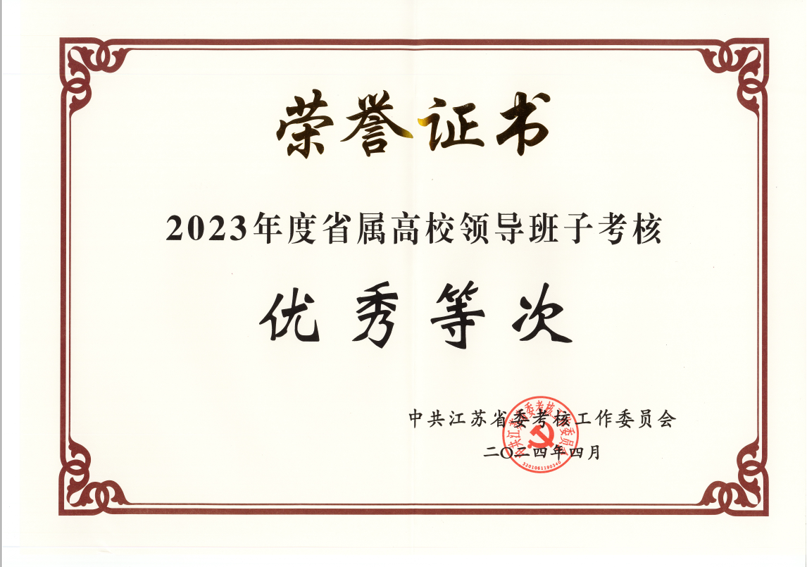 近日,中共江苏省委组织部公布2023年度地方普通高校领导班子考核结果,beat365领导班子在考核中获评“优秀”等次。这是省委对学校领导班子团结奋进、担当实干的高度肯定和认可,也充分体现了校党委紧扣立德树人根本任务,以高质量党建引领事业高质量发展所取得的显著成效。