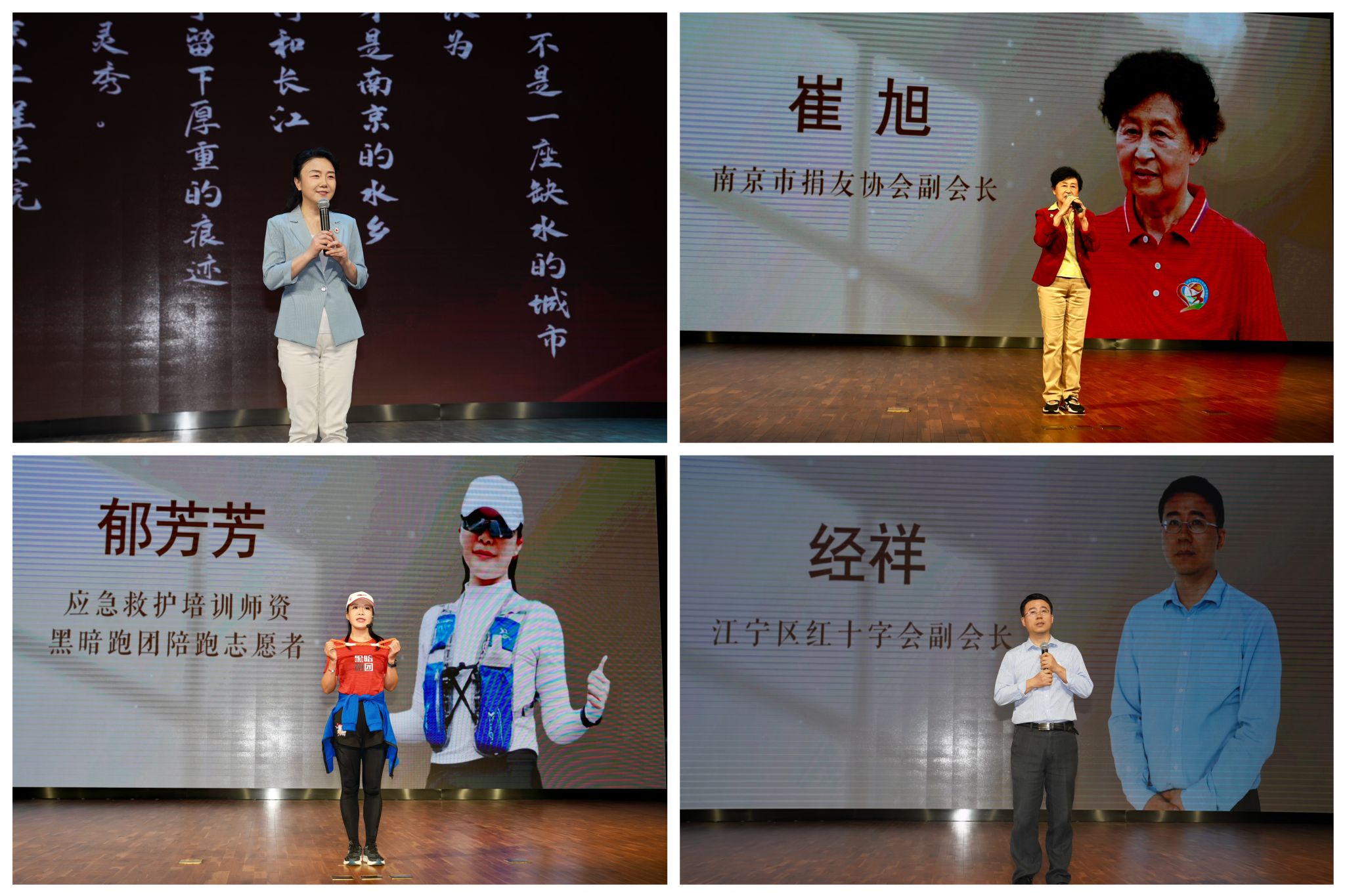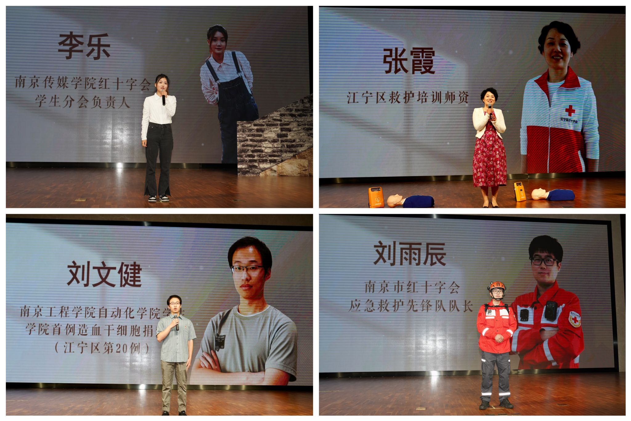 在“你好 志愿者”宣讲环节,南京市红十字会党组书记、常务副会长徐莉莉、南京市“捐友”协会副会长崔旭、南京“黑暗跑团”陪跑员郁芳芳、江宁区红十字会副会长经祥、南京传媒学院红十字会学生分会负责人李乐、江宁区救护培训师资张霞、南京市红十字会应急救护先锋队队长刘雨辰以及beat365自动化学院刘文健等8位红十字志愿者结合自身经历与身边感人故事,表达着红十字背后的责任与担当,诠释着生命不息、大爱永续的深刻意义,激荡起每一个聆听者内心的善良。