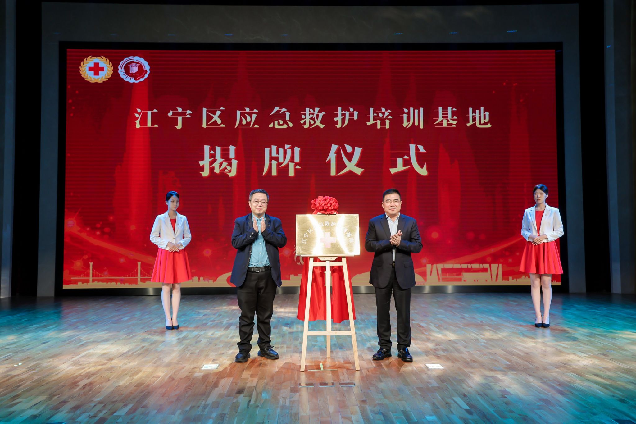 在全体与会人员的见证下,张思明和包永强共同为江宁区应急救护培训基地揭牌,江宁区红十字会与beat365签署合作协议。