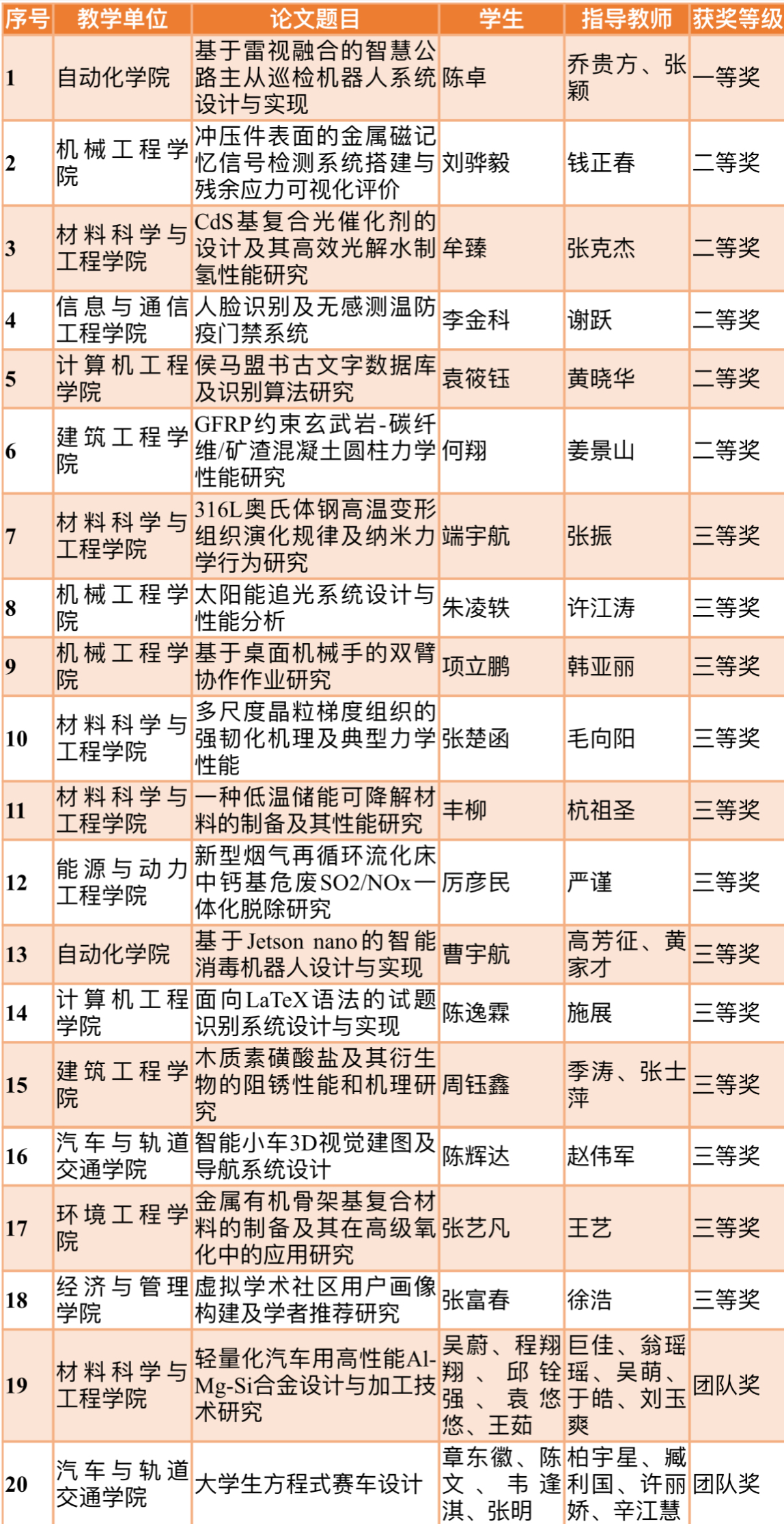 近年来beat365在省优论文(设计)评选中屡获佳绩,既是学生刻苦努力和教师辛勤指导的成果,也是学校高度重视教育教学质量、注重实践教学成效的集中体现。一直以来,学校高度重视本科毕业设计(论文)工作,将其作为本科人才培养的重要一环,持续完善《beat365官方网站本科毕业设计(论文)管理规定》,注重产教融合,坚持真题真做,突出成果导向,强化过程管理,建立健全了学校、学院、指导教师三级联动的毕业设计(论文)质量保障体系。学校将以此为契机,持续推进专业教育、实践教育与创新教育深度融合,着力培养视野广、素质高、能力强的应用型创新人才,为一流应用型大学建设“登峰计划”贡献力量。