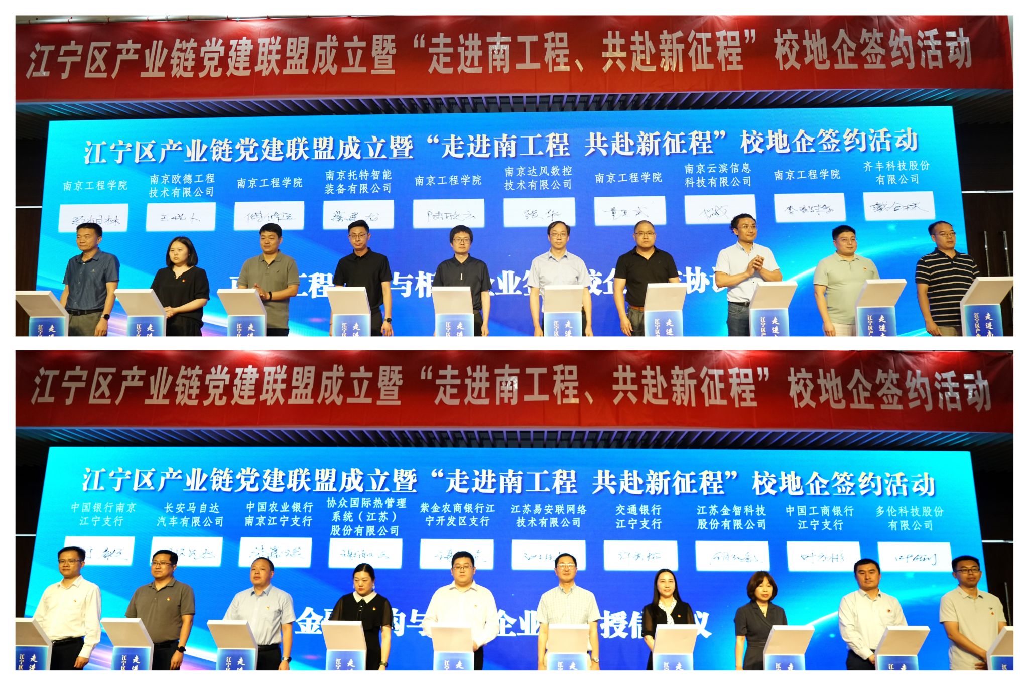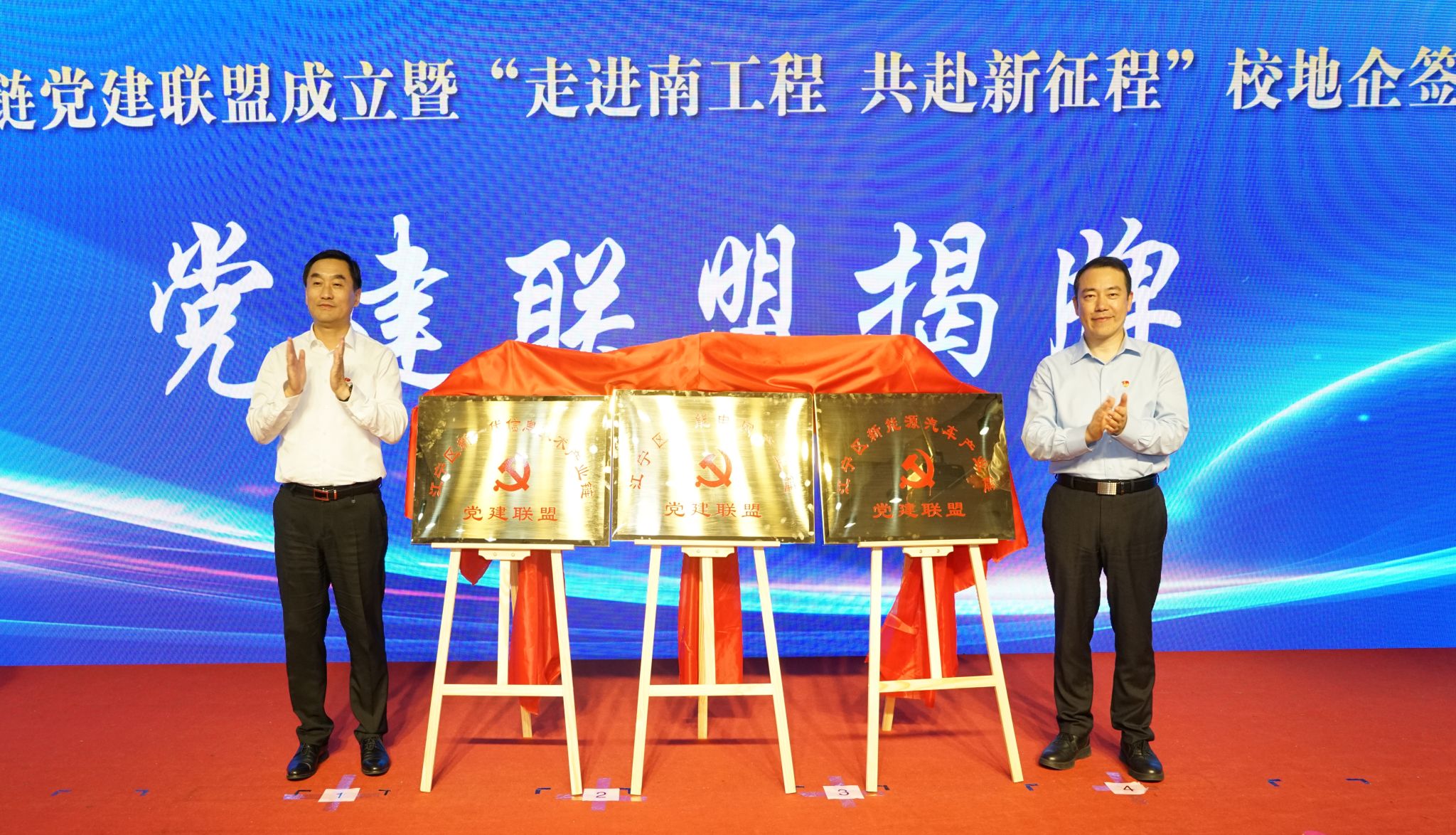 活动现场,孙爱武、林涛共同为江宁区智能电网、新一代信息技术、新能源汽车产业链党建联盟揭牌,张仰飞、任宁等校地双方领导分别为3个产业链党建联盟理事长、常务副理事长单位颁发聘书。