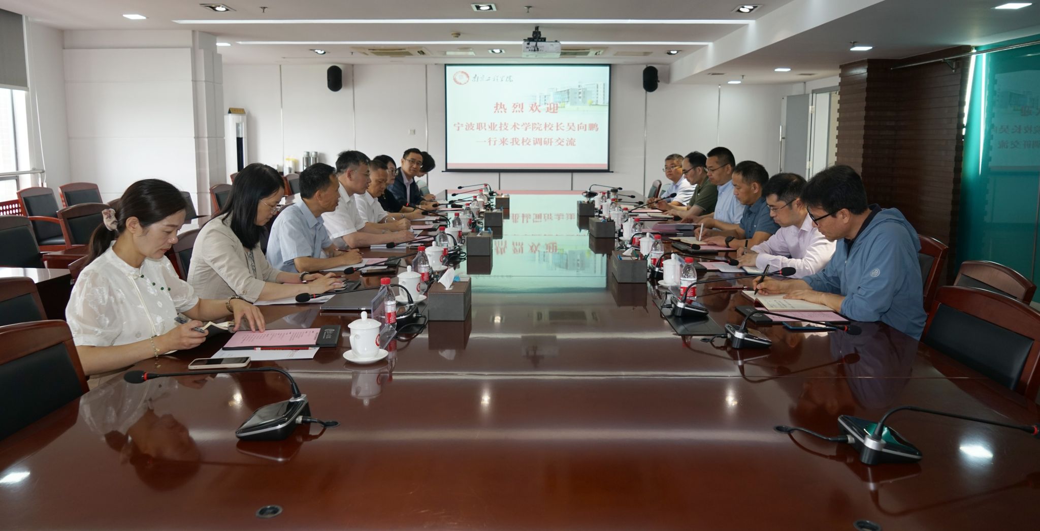 7月3日上午,宁波职业技术学院党委副书记、校长吴向鹏一行来校调研交流。党委常委、副校长陆华良在至勤楼·行政中心北楼303会议室热情接待了来宾一行并座谈。