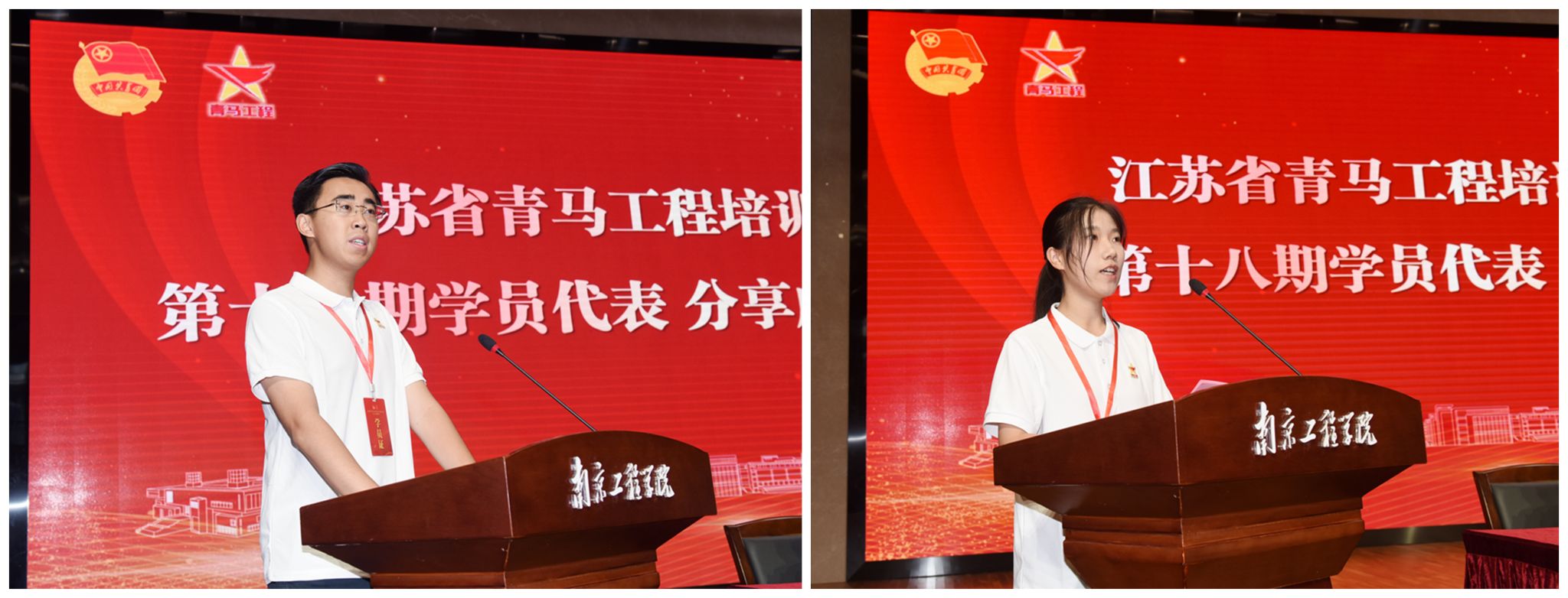 省“青马工程”第十七期学员代表马驭分享了培训的心得体会,他表示“青马工程”为青年学子搭建了融汇多元智慧、激发奋进力量的宝贵平台,画出了青年成长的“同心圆”。他勉励新一期学员,不忘师长栽培、铭记青马精神,奋力跑出新时代江苏青年的最好成绩。